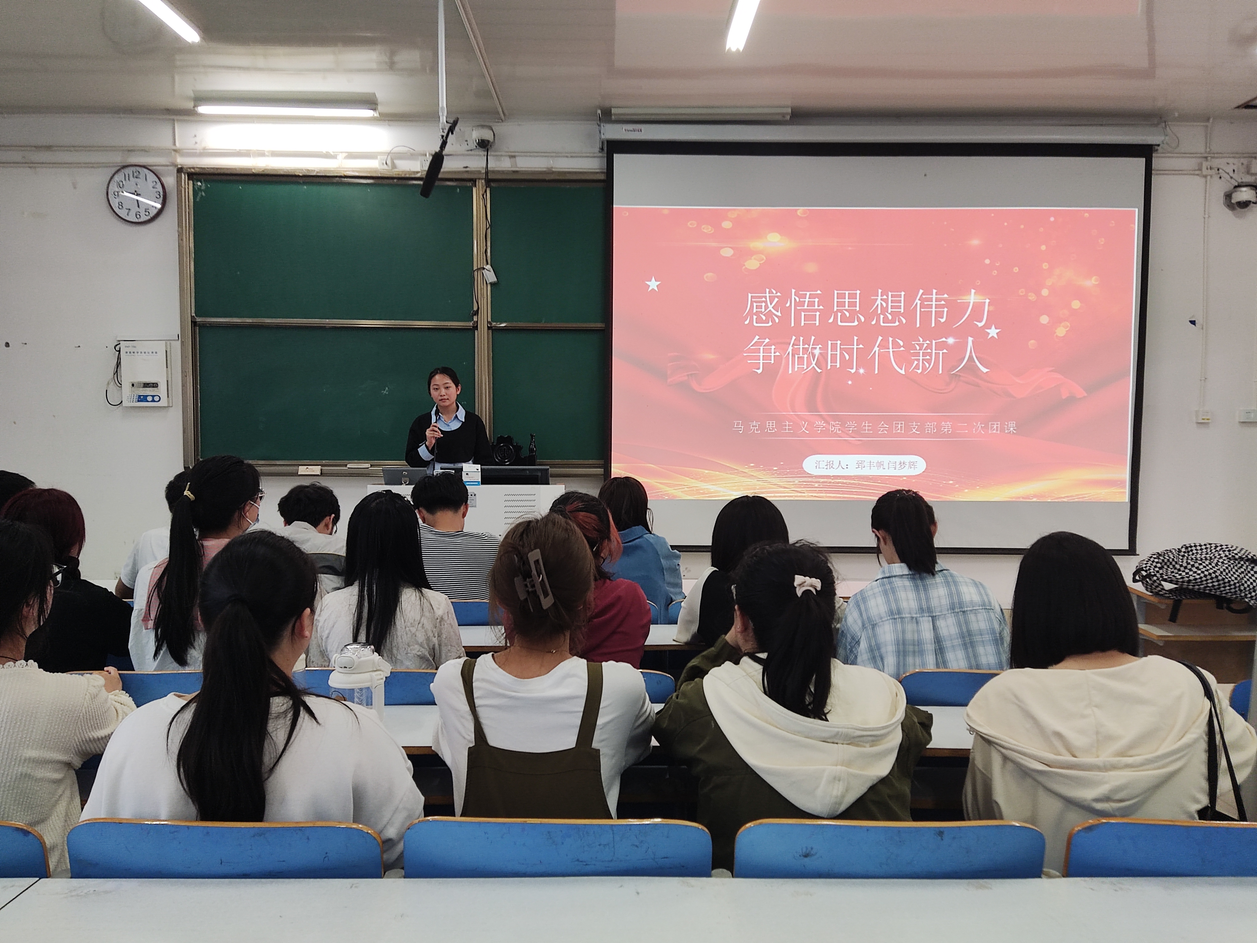 为深入学习贯彻习近平新时代中国特色社会主义思想,学思践悟马克思主义青年观,4月13日下午,永利集团官网在社科楼515教室开展“感悟思想伟力,争做时代新人”主题团课。永利集团官网学生会团支部全体成员参与本次团课,团课由团支部宣传委员郅丰帆主持。
