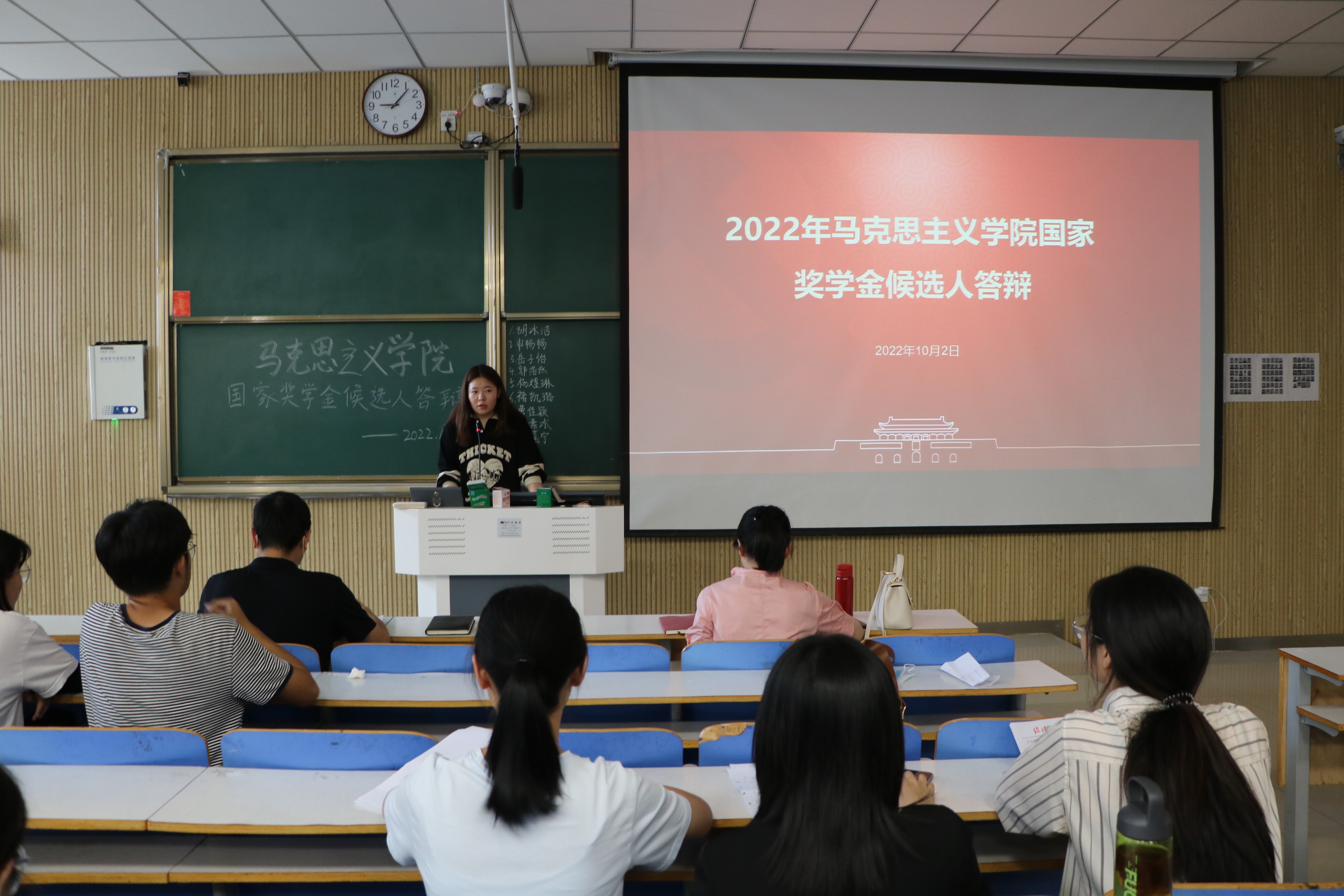 为了确保奖学金评选工作的公平公正公开,充分发挥优秀学生的示范引领作用,10月2日上午,永利集团官网在社科楼515教室召开国家奖学金候选人答辩。永利集团官网党委副书记黄煌、2020级班主任曹栋、陶青青及八位候选人共同参加此次答辩会议。会议由学生会主席李明营主持。