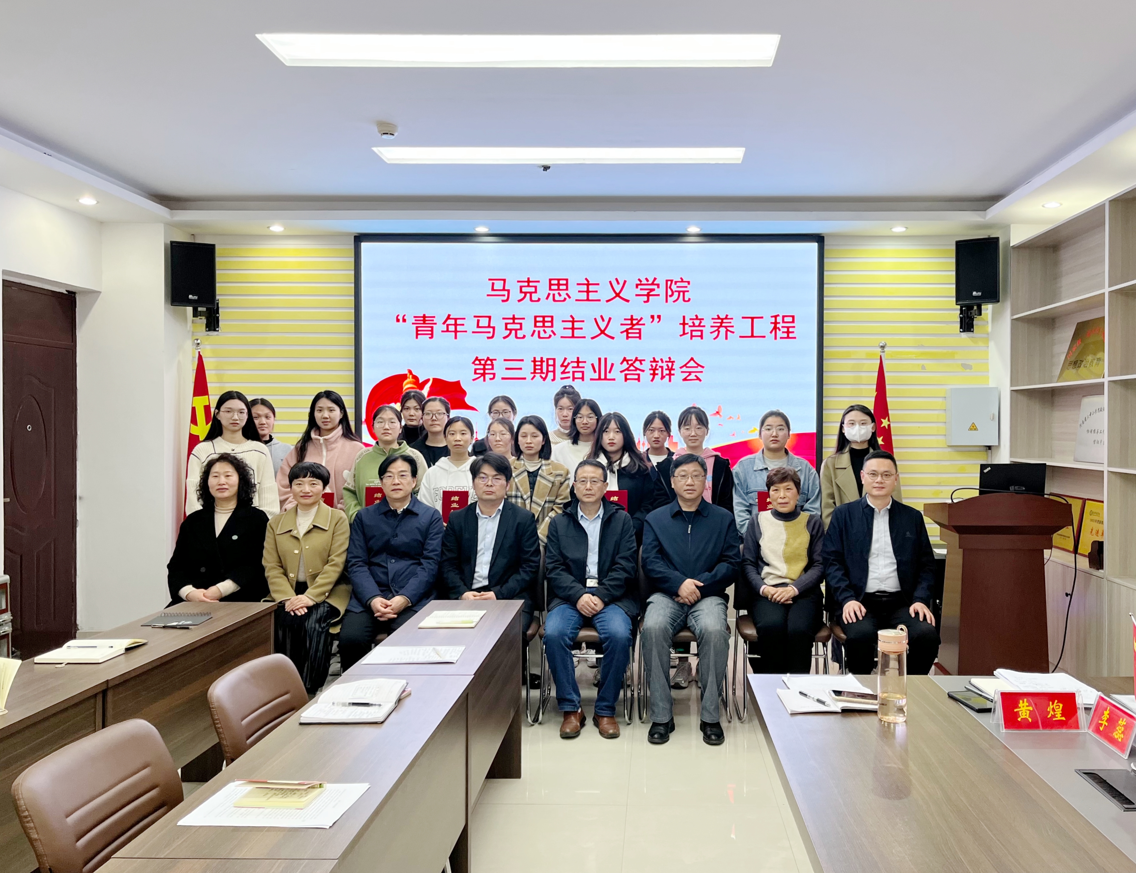 10月12日下午,永利集团官网在社科楼323会议室举办“青年马克思主义者”培养工程第三期结业答辩会。永利集团官网全体领导班子成员、教师代表王瑞芳、专职组织员任婷以及第三期青马工程全体学员和第四期青马学员代表共同参与。会议由党委副书记黄煌主持。