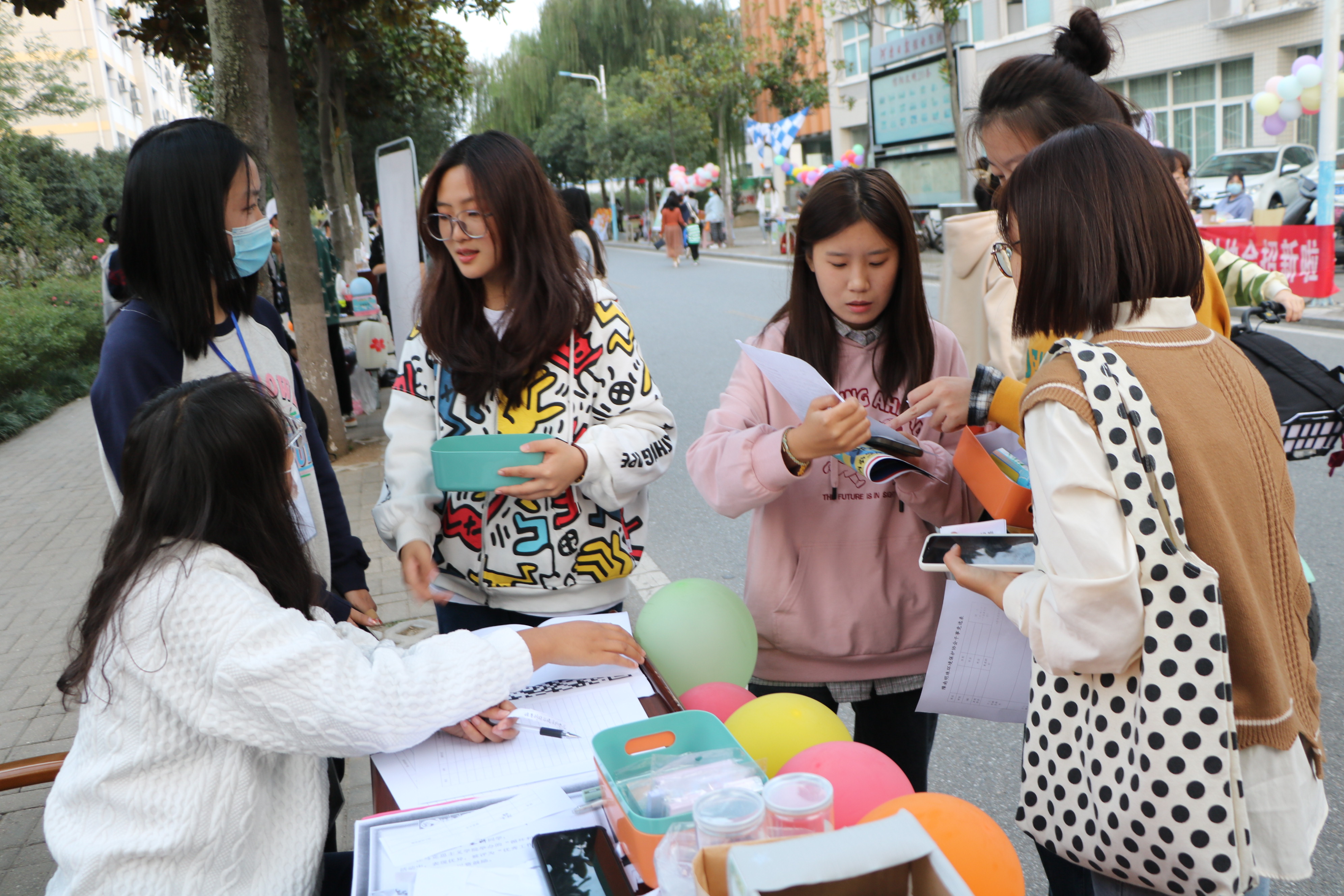 为丰富校园文化生活,搭建“五育”并举的社团育人平台,10月14日,由我校社团联合会举办的“百团大战”社团招新活动在思齐路正式拉开帷幕。在常态化疫情管理下,永利集团官网南湖理论研讨社、豫南明珠环境保护协会和考研服务社分批次参与本次招新活动。