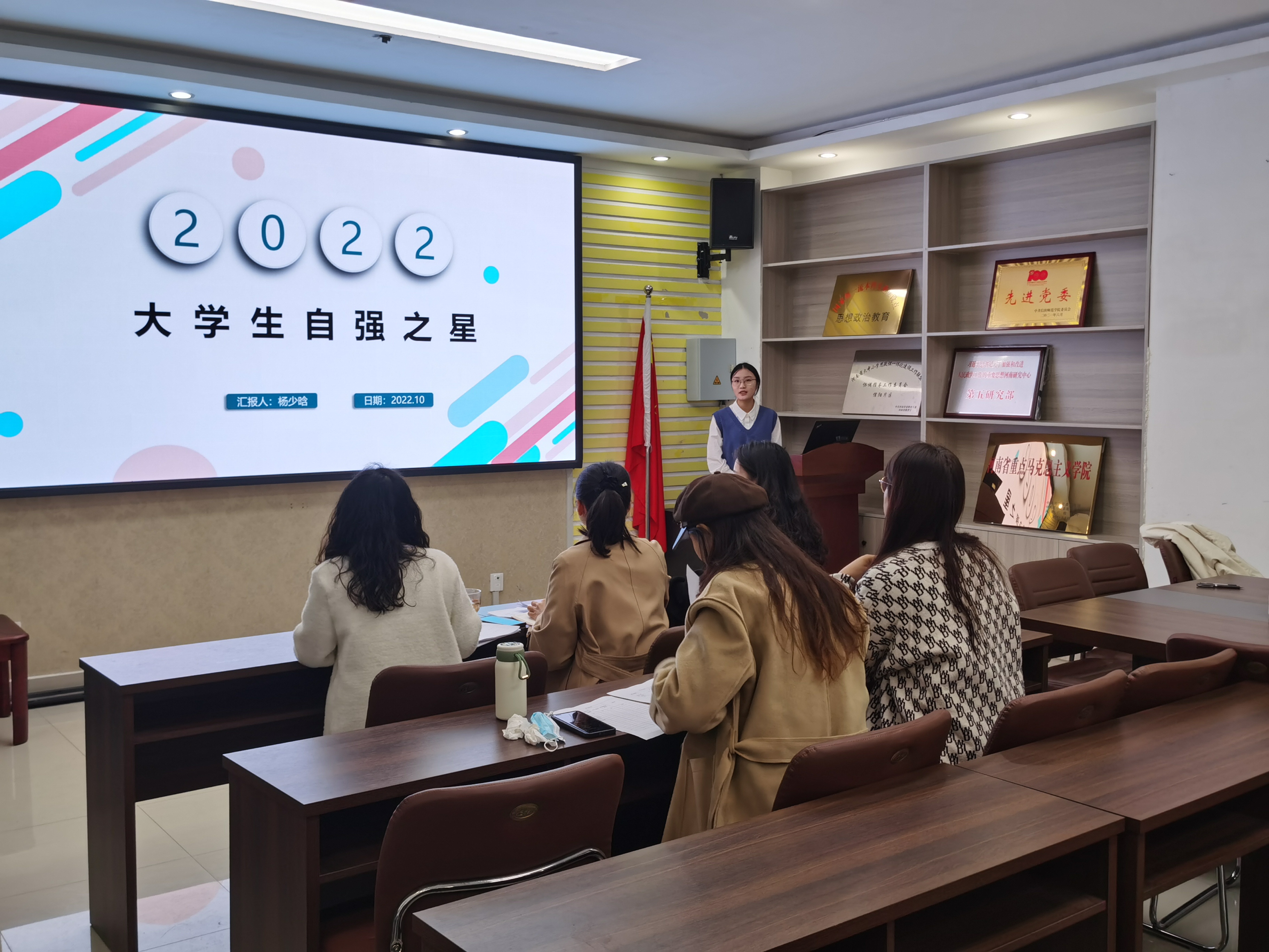 为深入贯彻落实习近平总书记关于青年工作的重要思想,鼓励青年践行“强国有我”的青春宣言,10月26日上午,永利集团官网在社科楼323会议室举办了“大学生自强之星”候选人评选活动,永利集团官网团委书记陶青青,专职组织员任婷,班主任王明园、杨春艳、吴梦云出席活动并担任评委。活动由组织部负责人韩奕晨主持。
