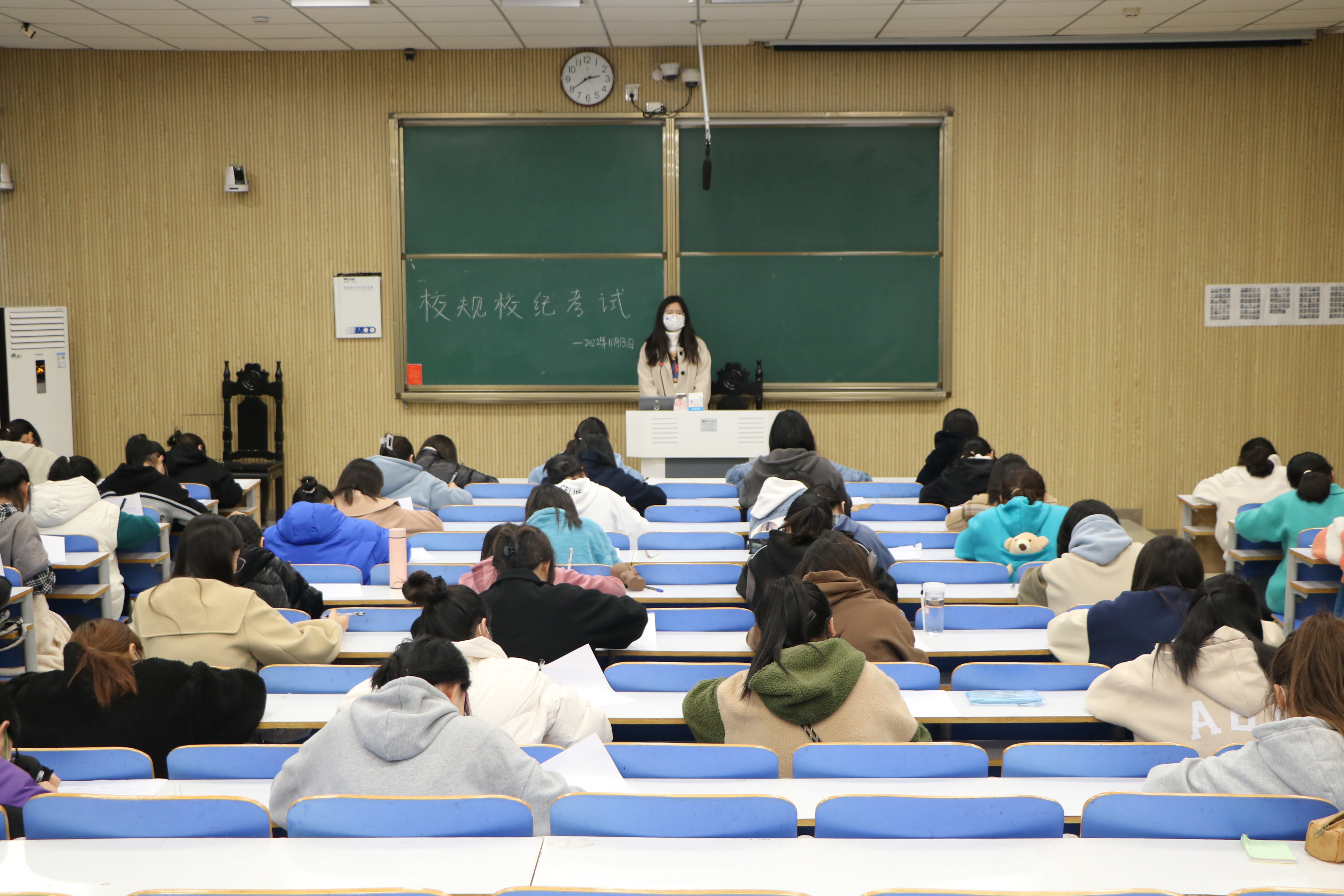 此次考试采用闭卷形式,隔位就坐,考试内容以《思想政治教育材料选编2022年学生工作规章制度专栏》为纲要,考试试题涉及宿舍管理、综合测评、违规处分、奖学金申请等多方面内容。试卷包括选择、填空、判断、简述和论述五大题型,有助于全方位、多角度考查新生对校规校纪的了解和掌握。考试开始前,监考员维持考场秩序并宣读考试注意事项,重点强调要严格遵守考试纪律,诚信答卷。考试过程中,监考员巡视考场,严格监考;同学们态度端正,遵守纪律,认真答题。整场考试纪律严明,秩序井然。考试结束后,监考员收取试卷,考生在检查基本信息无误后依次有序离开考场。