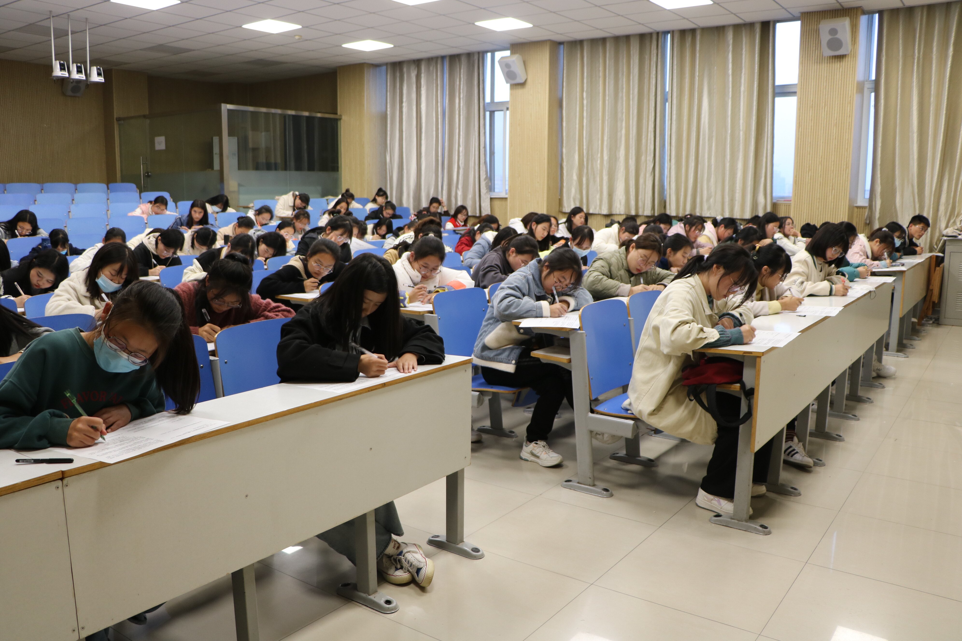 本次考试以《思想政治教育材料选编》为纲,涵盖校规校训、宿舍管理、综合测评、违规处分等多方面内容,采用闭卷形式进行考察,包含选择、填空、判断、论述四种题型,多方面考察新生对校规校纪的理解。考试开始前,同学们积极备考,准备充分。考试过程中,监考员认真巡视,严格监考,维持考场秩序,同学们态度端正,严守纪律,专心答题。整场考试纪律严明,秩序井然,进展顺利。考试结束后,监考人员收取试卷,考生有序离开考场。