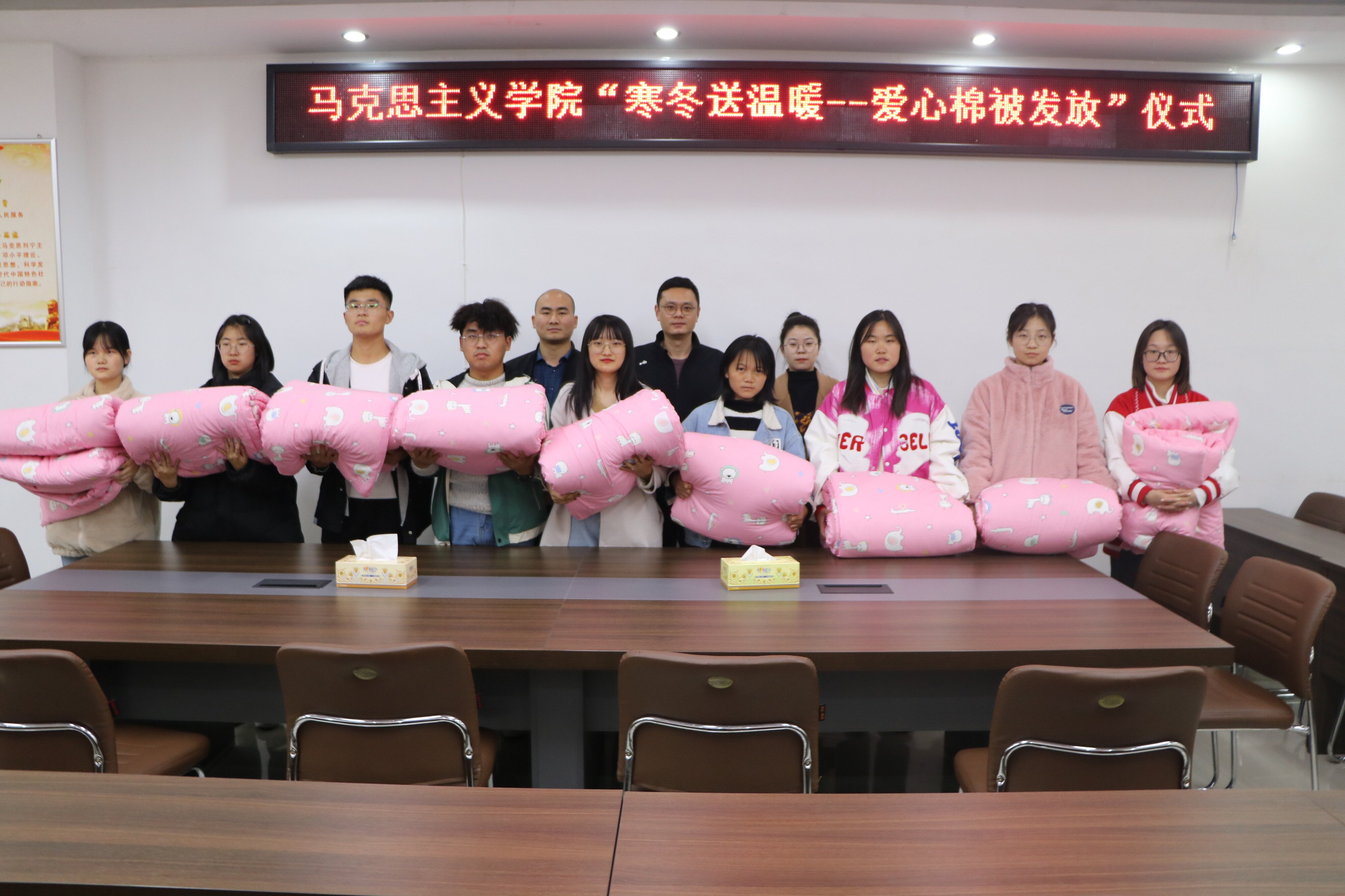 寒冬将至,温暖不止。11月26日下午,永利集团官网在社科楼323会议室举行爱心棉被发放仪式。永利集团官网党委副书记黄煌、班主任高小佳、周文豪及受资助学生共同参加此次仪式。仪式由黄煌主持。