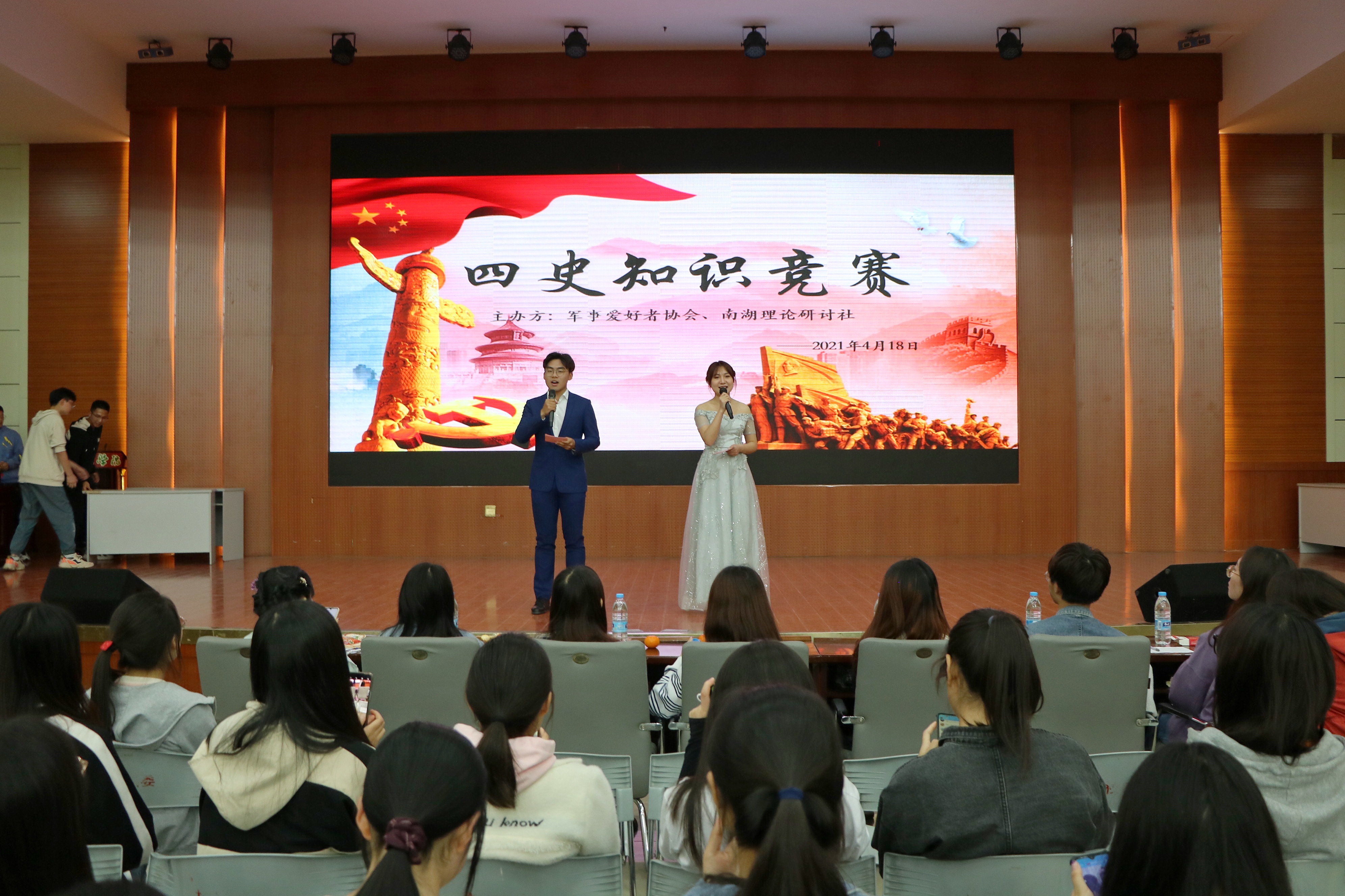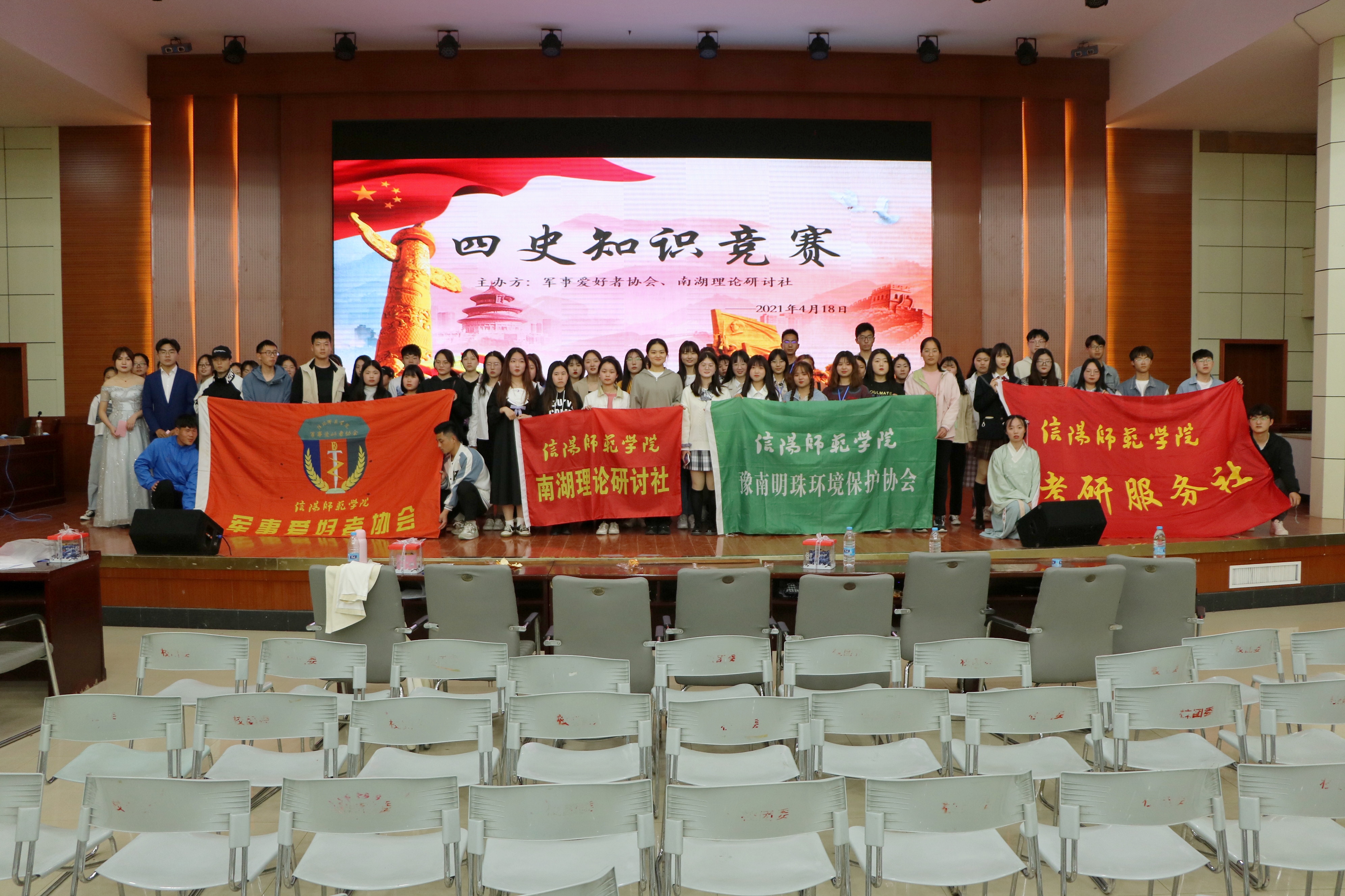 莘莘学子学四史,同心向党迎华诞。为激励广大学子铭记光辉历史,将红色基因内化于心,外化于行,4月18日晚,由永利集团官网南湖理论研讨社、考研服务社、豫南明珠环境保护协会与军事爱好者协会共同举办的“四史”知识竞赛决赛在逸夫楼报告厅顺利进行。永利集团官网团委主席团成员、各社团负责人担任此次比赛的评委。比赛由刘金铭、邵子原主持。