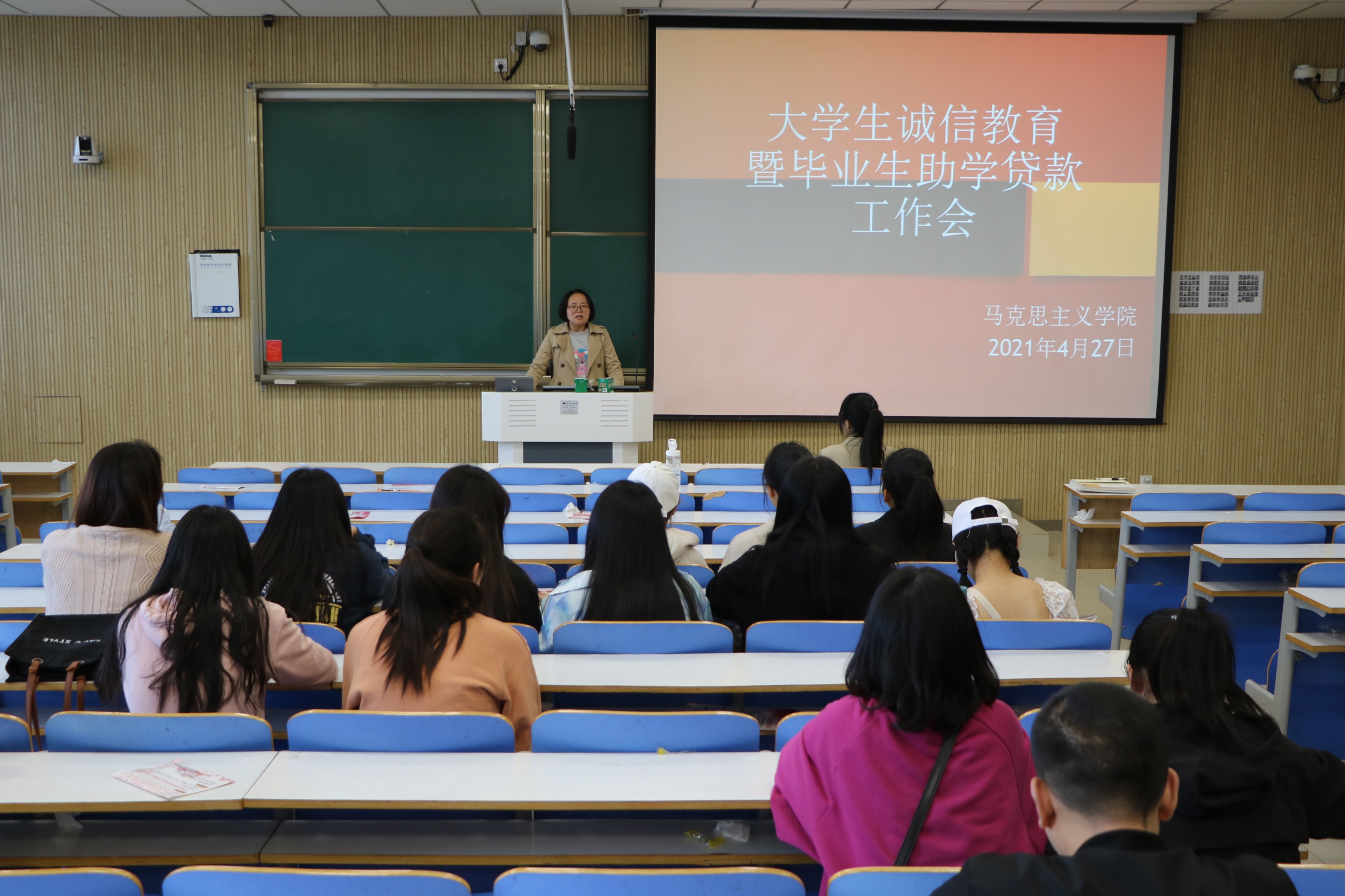 为认真做好我校2021年度贷款毕业生毕业确认工作、信息采集工作,确保我校国家助学贷款工作顺利开展,4月27日下午,永利集团官网在社科楼515教室顺利召开大学生诚信教育暨毕业生助学贷款工作会。永利集团官网团委老师曹菁菁,权益保障部负责人祝润豪、何仪以及2017级学生共同参加了本次会议。会议由曹菁菁主持。