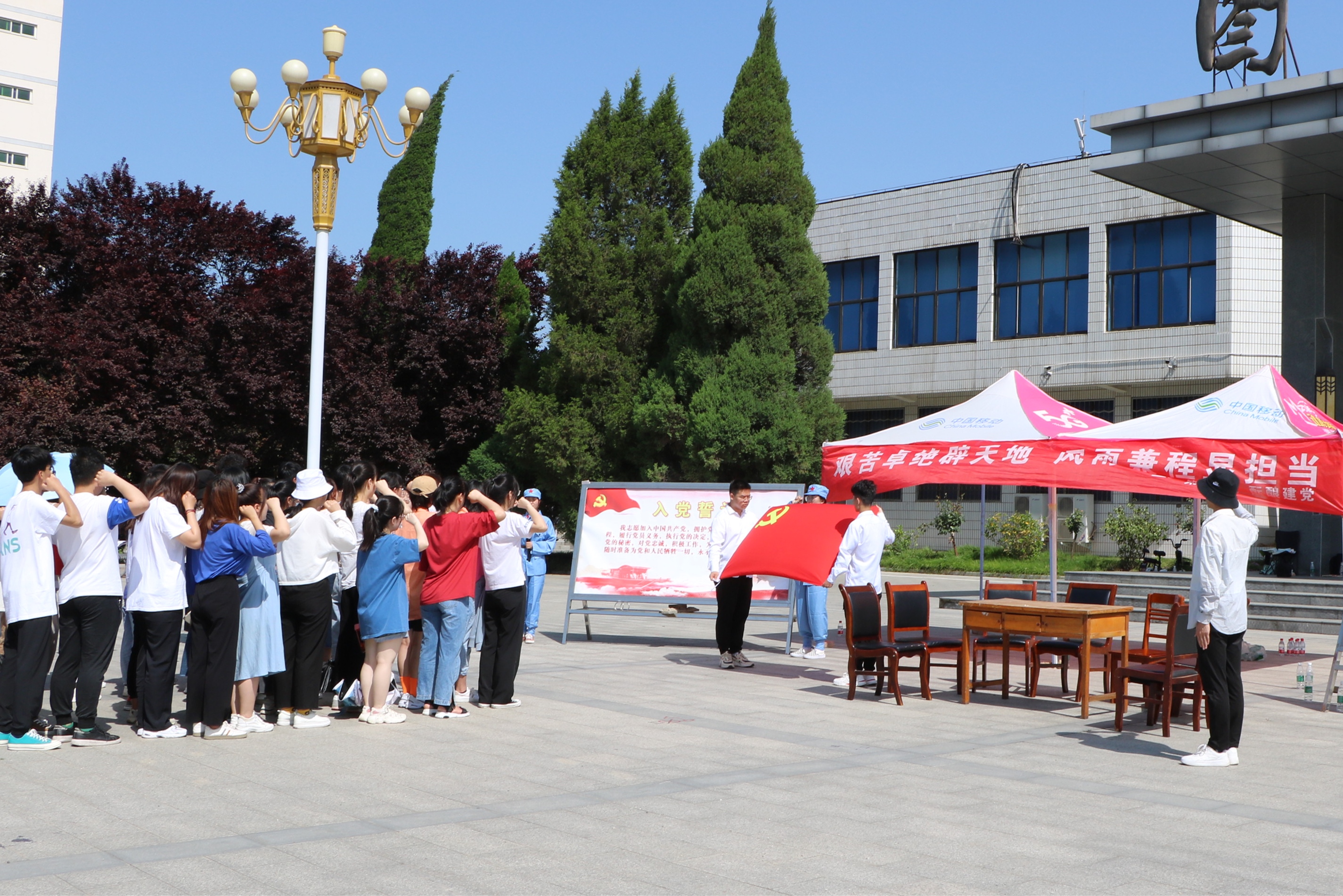 为热烈迎庆中国共产党成立100周年,5月9日上午,由校团委、校学生会主办的“信阳师范学院2021年百年党史校园行素质拓展活动”在校内隆重举行。我校近2000名学生共同参加此次活动。永利集团官网积极响应学校安排,组织并参加了此次活动。