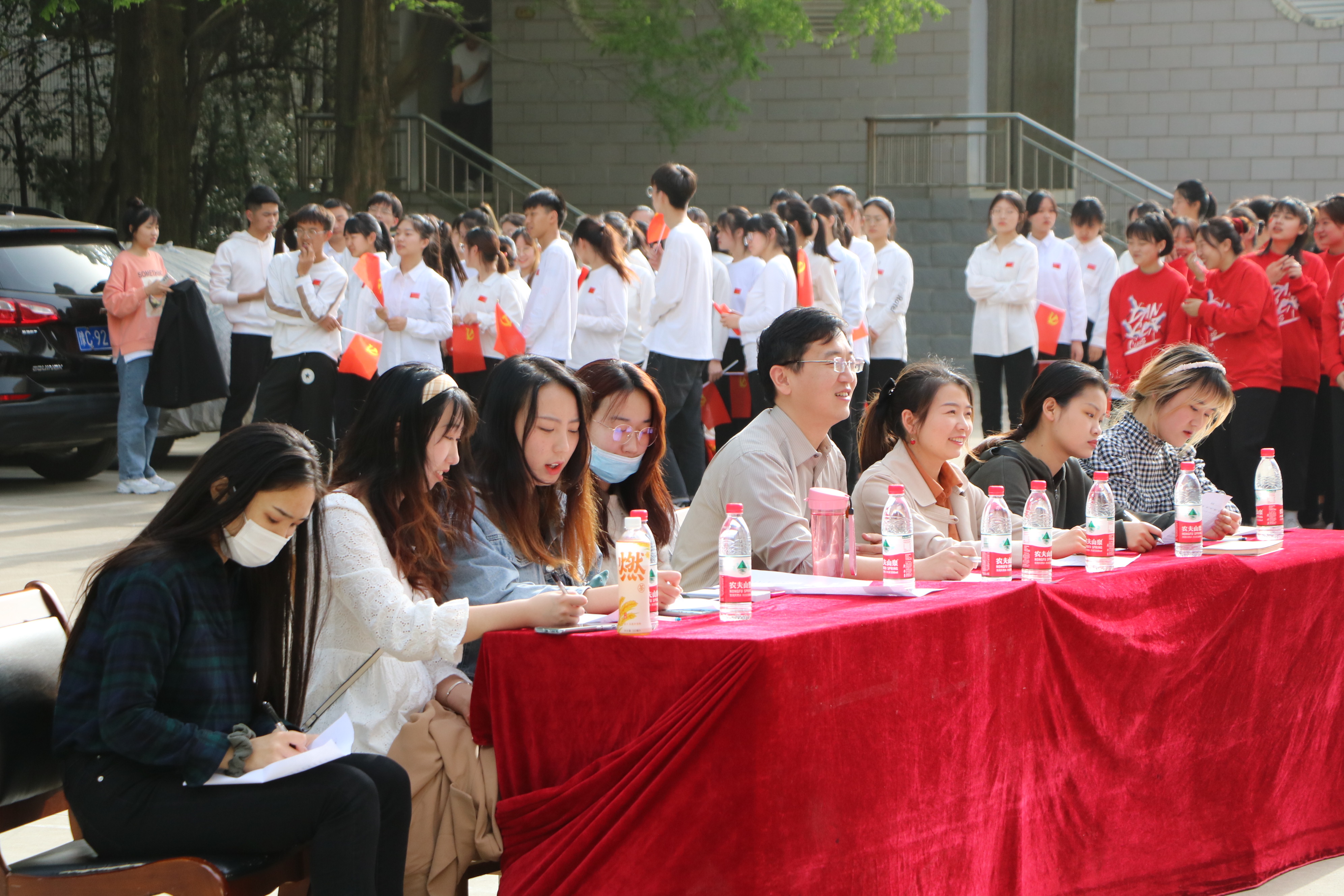 4月16日下午,永利集团官网在教八楼前举办“红歌颂党恩”合唱比赛。永利集团官网团委书记曹栋、团委老师陶青青以及学生会主席团代表成员担任比赛评委,2019、2020级全体学生共同参加本次比赛。比赛由学生会副主席袁祖顺主持。