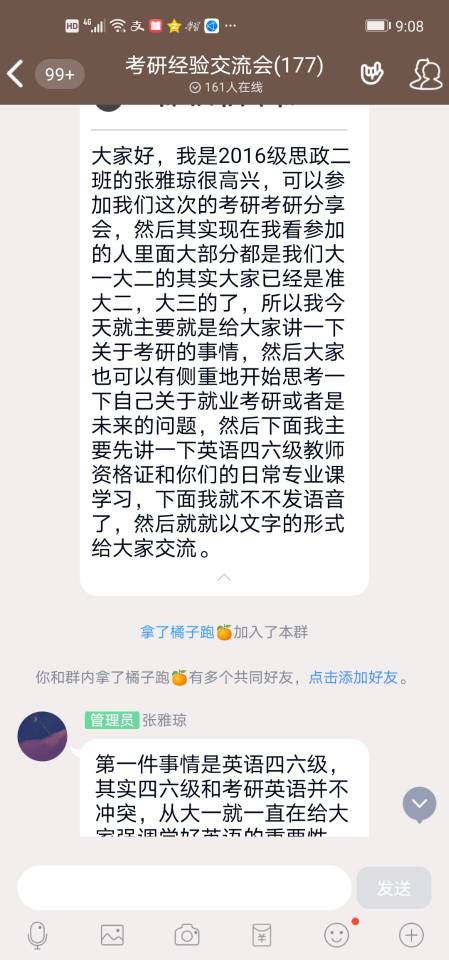 6月11日下午,永利集团官网考研服务社通过腾讯QQ线上平台举办了“以梦为笔,绘美研途”主题考研经验交流会。永利集团官网2016级优秀考研学生代表张雅琼、张美兰以及2018、2019级有意向考研的同学共同参加本次交流会。会议由考研服务社牛笑怡主持。