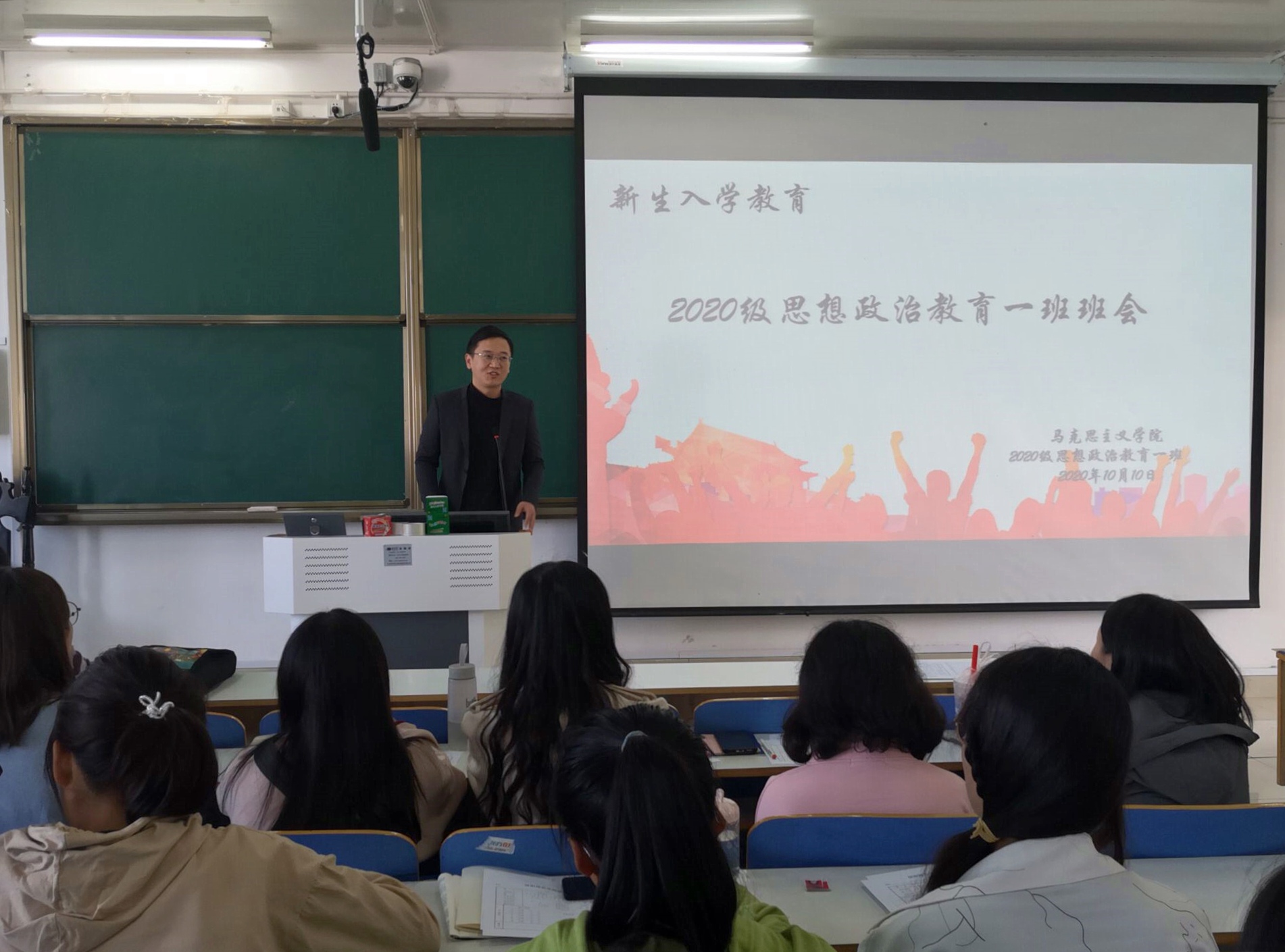 10月10日下午,永利集团官网分别在社科楼514、516开展新生入学教育班会。辅导员曹栋、陶青青以及2020级全体新生共同参加了此次班会。班会由班代郭世龙、靳雨露主持。