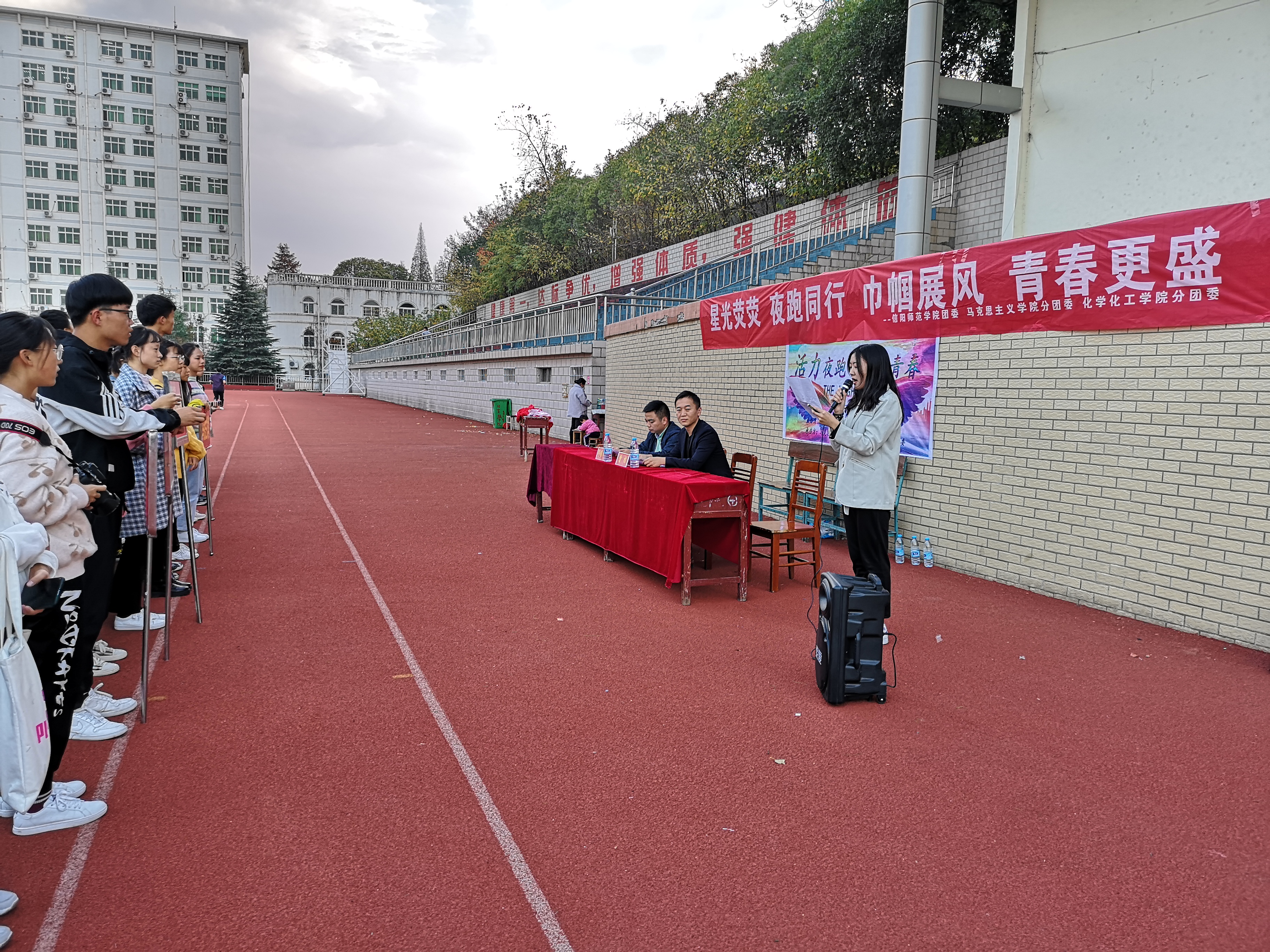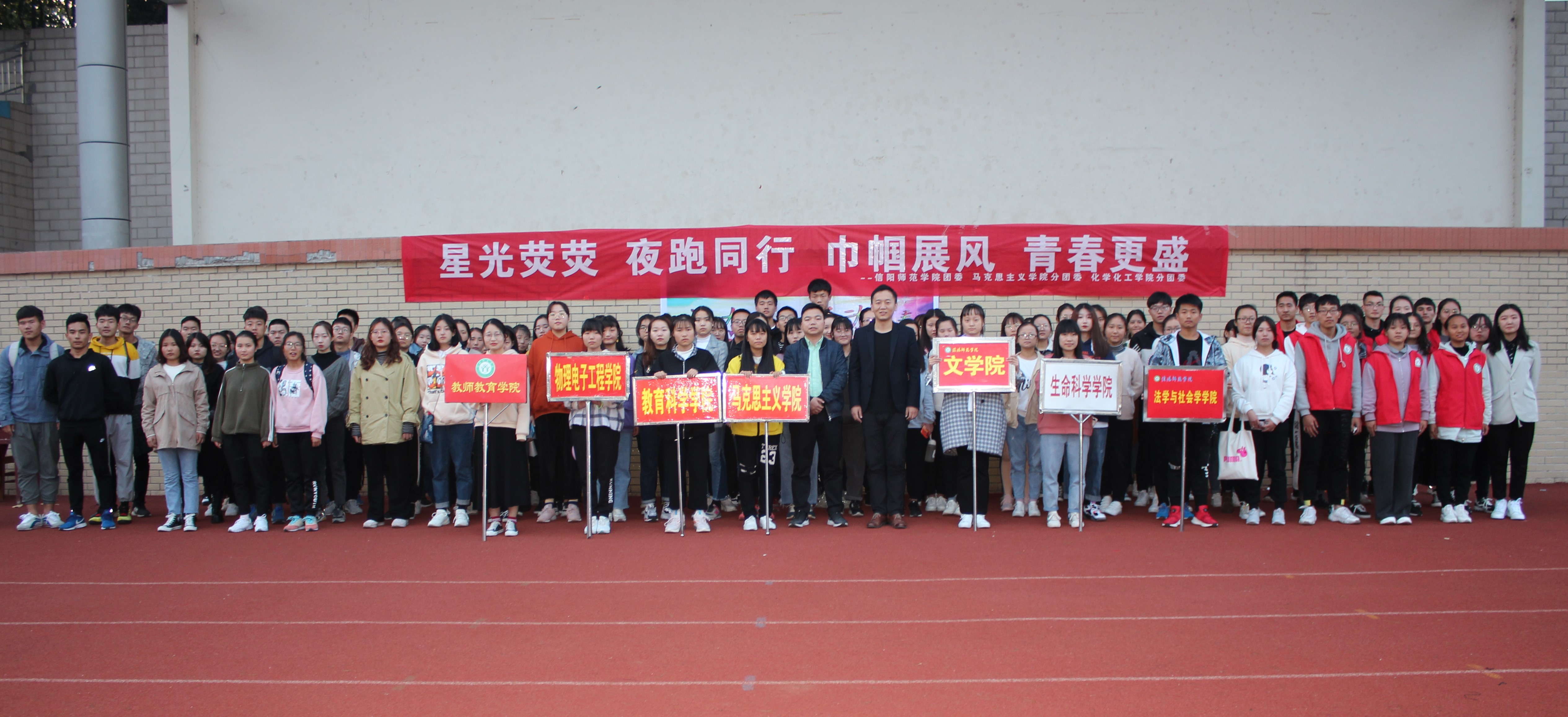 11月15日下午,由信阳师范学院校团委主办,永利集团官网和化学化工学院联合承办的“活力夜跑,跃动青春”夜跑活动开幕式在西操成功举行。永利集团官网团委书记曹栋,化学化工学院团委书记邓耀辉以及各院夜跑活动的参与者共同参加本次开幕式。开幕式由化学化工学院学生邵瑾主持。