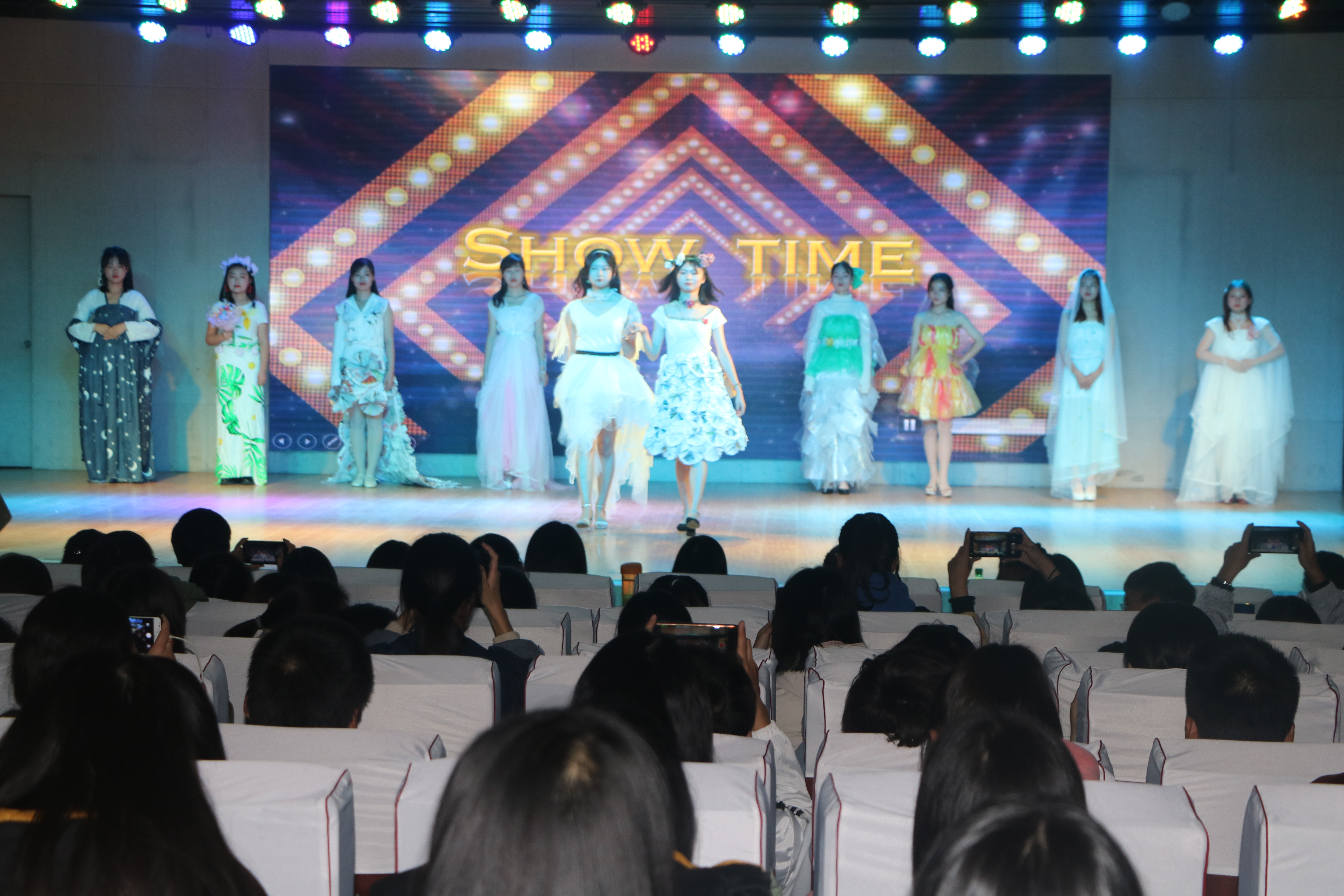 经过初赛、复赛层层选拔,十组选手入围决赛。决赛分为轻纱寄彩梦、报布出新裁、塑塑新时代、流光衬异彩四个篇章。青春动感、活力四射的开场舞拉开比赛序幕。随后,各参赛小组依次登台展示她们独出心裁的服装,精妙的解说词让观众们深入了解作品的设计理念、创作过程和使用材料。优雅端庄、自信大方的走秀表演展现了设计者们独特新颖的服装设计,为同学们带来一场环保与时尚碰撞的视觉盛宴。比赛过程中穿插歌曲、相声、有奖竞答等环节,内容丰富,精彩纷呈。其中,永利集团官网2018级参赛小组用废弃条幅、纱帐等材料制成的以纤云梦为主题的服装作品“礼•关雎”,立足于雾霾治理,着眼于碧水蓝天,不仅体现出环保理念又融合了时尚元素,获得了评委们的青睐,最终摘得桂冠。