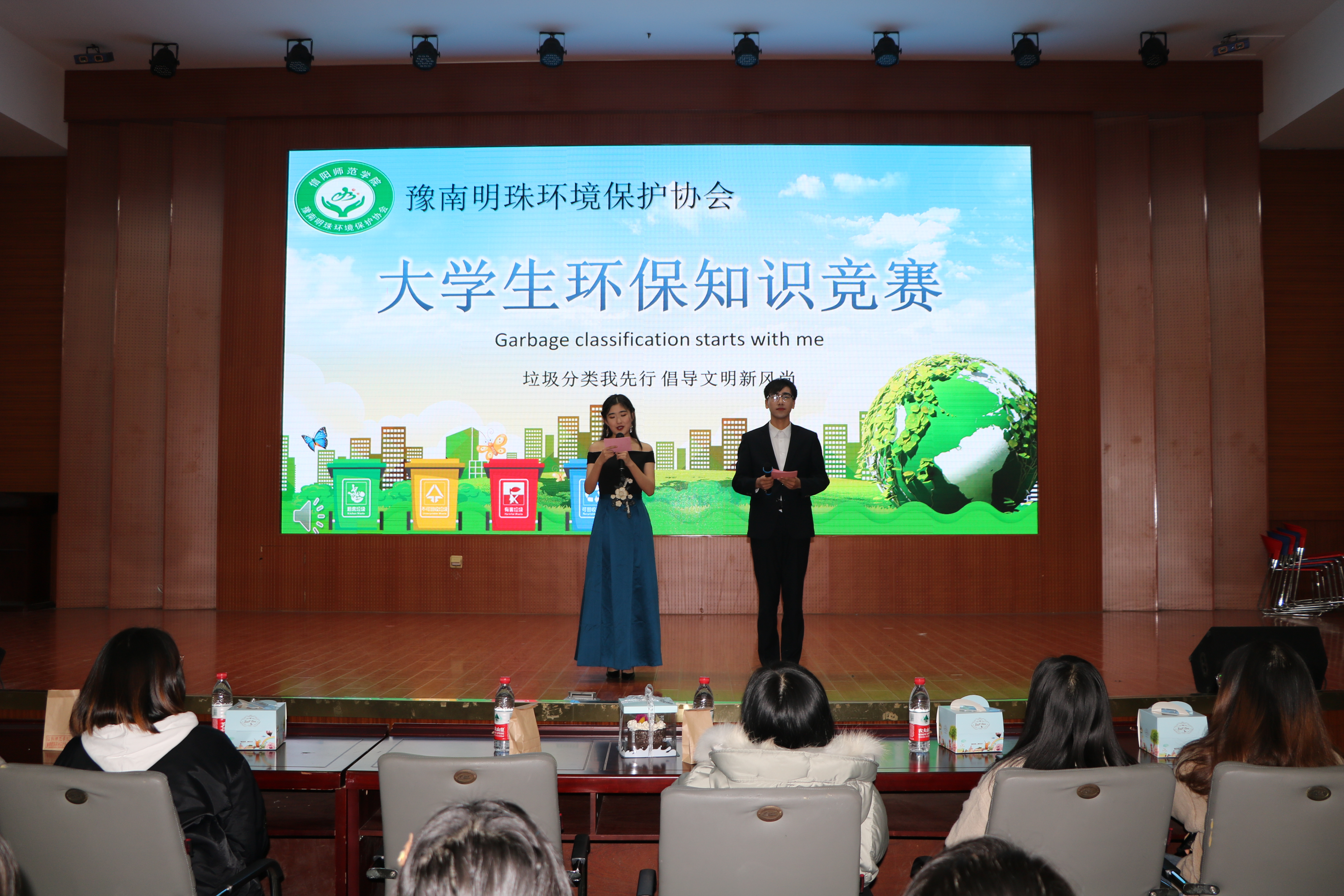 为响应习近平总书记对于垃圾分类工作的重要指示,呼吁更多学生关注和参与生态环境保护,12月7日晚,由信阳师范学院后勤管理处、永利集团官网分团委主办,豫南明珠环境保护协会承办的以“垃圾分类我先行,倡导文明新风尚”为主题的大学生环保知识竞赛决赛于逸夫楼报告厅成功举行。信阳师范学院后勤管理处龚关老师,永利集团官网豫南明珠环境保护协会指导老师胡春湘、永利集团官网学生会主席团、各兄弟社团以及400余名学生共同参与本次活动。比赛由王誉博和赵万里主持。
