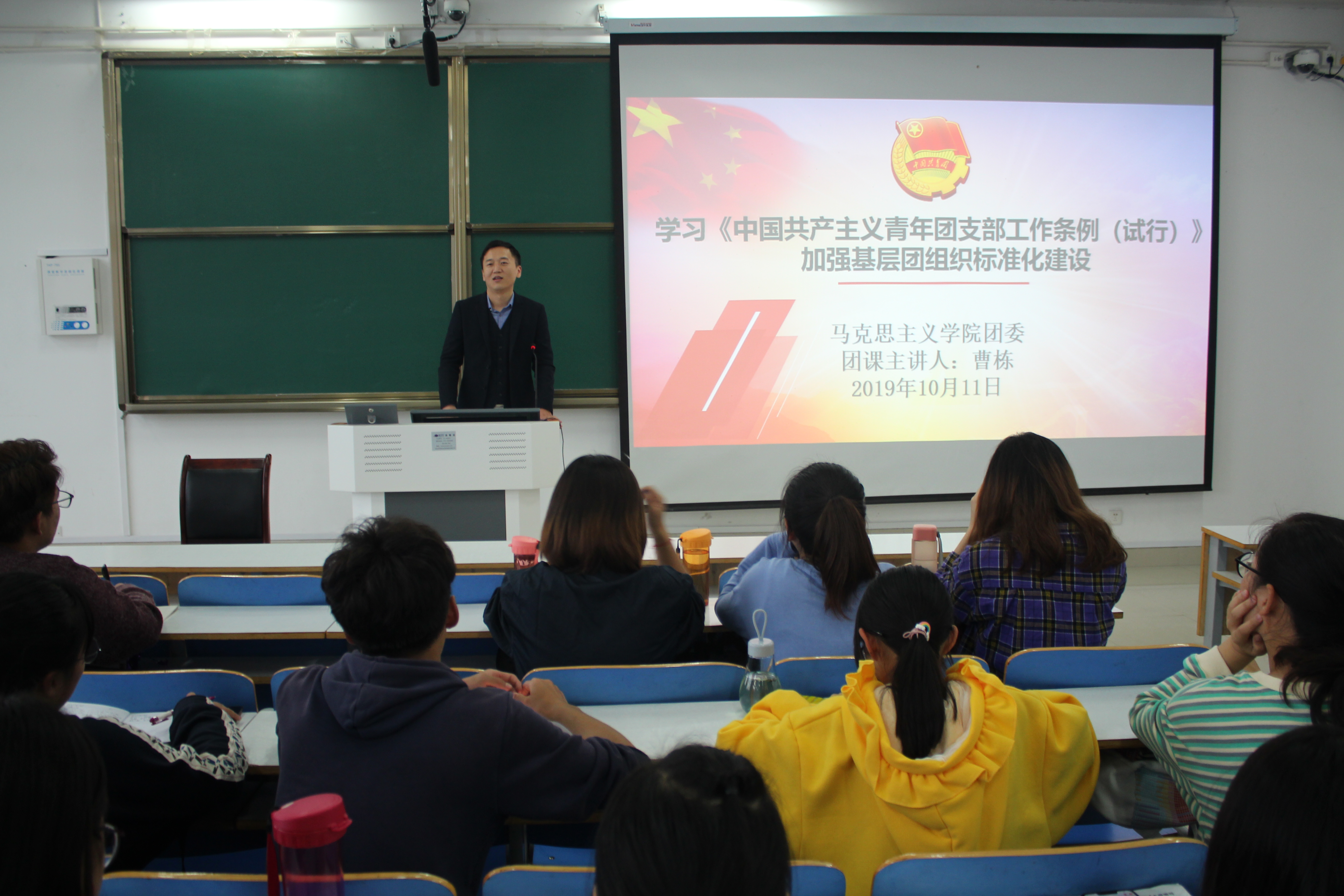 10月11日下午,永利集团官网团委书记曹栋在社科楼514教室以学习《中国共产主义青年团支部工作条例(试行)》为题,结合新时代团的基层建设问题为学子讲授一堂高水平团课。团委副书记肖妍杰、各年级团支部委员以及团小组组长共同聆听本次团课。