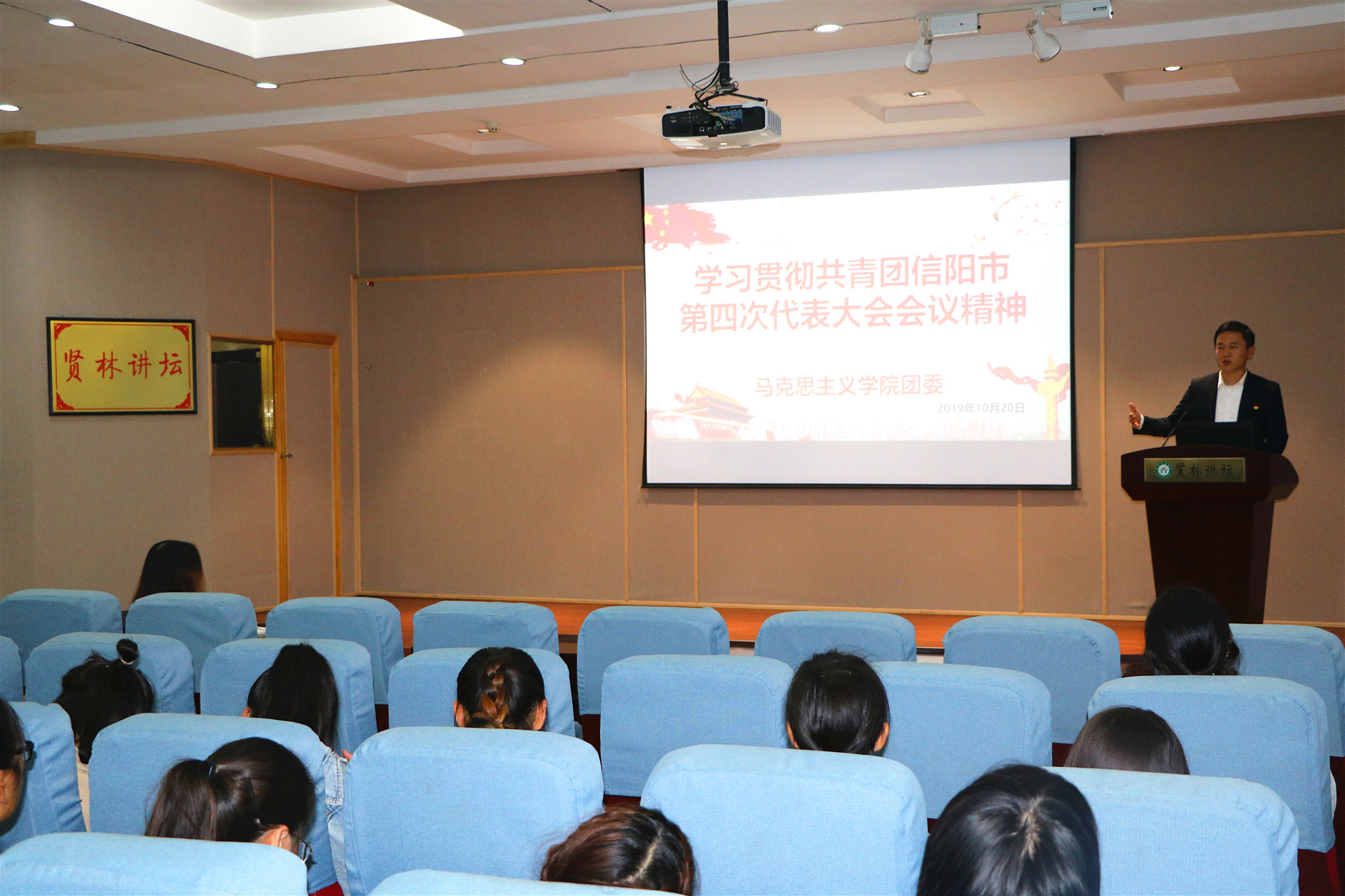 为深入学习贯彻落实共青团信阳市第四次代表大会会议精神,10月20日下午,永利集团官网团委书记曹栋在贤林讲坛为永利集团官网19级团员青年宣讲共青团信阳市第四次代表大会会议精神。永利集团官网党委副书记何晓坚、辅导员陶青青及2019级永利集团官网全体团员青年共同参加了本次会议。