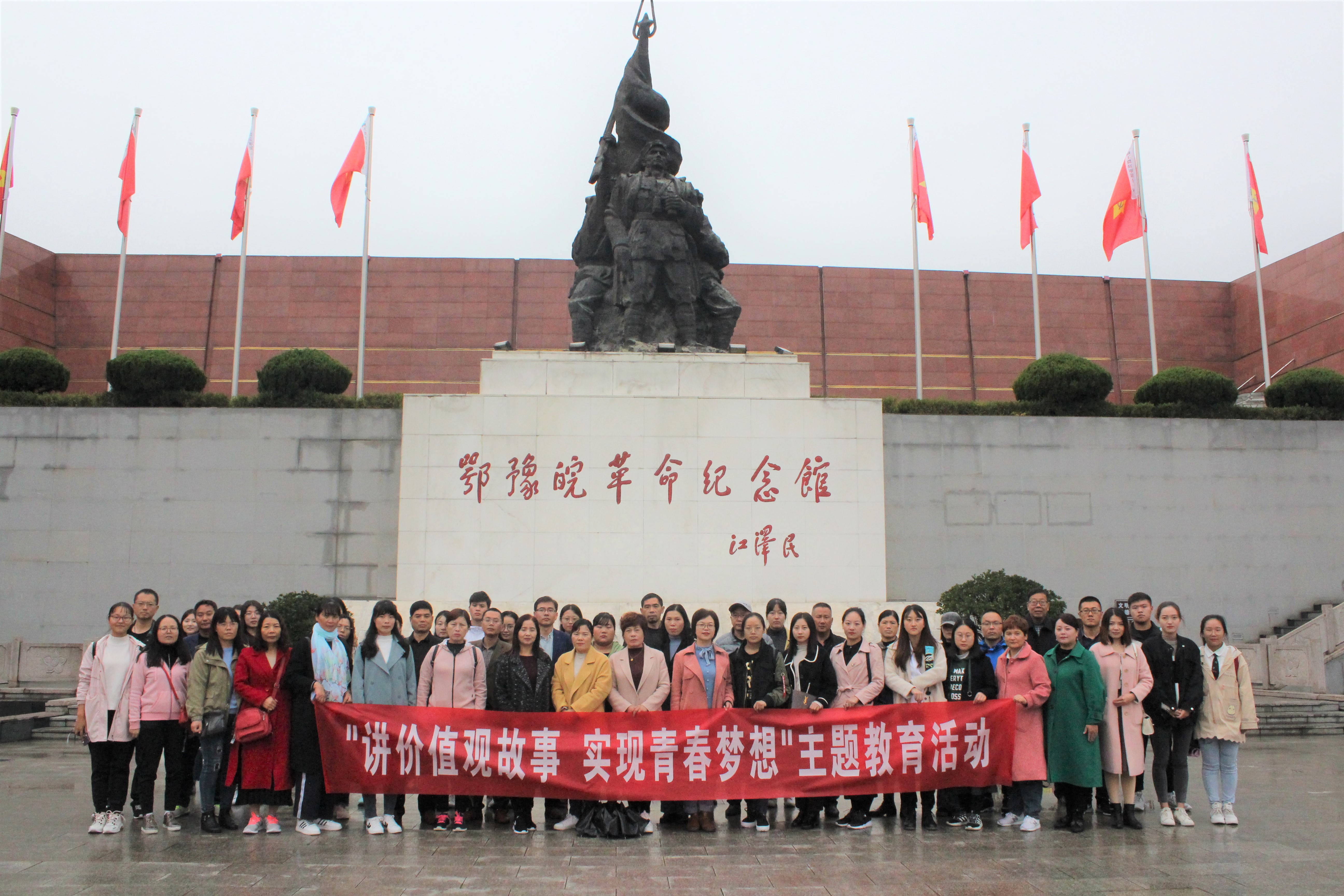 10月25日,永利集团官网在信阳市博物馆和鄂豫皖纪念馆开展“讲价值观故事,实现青春梦想”主题宣讲活动。团委老师曹菁菁、陶青青与宣讲同学共同参与本次活动。