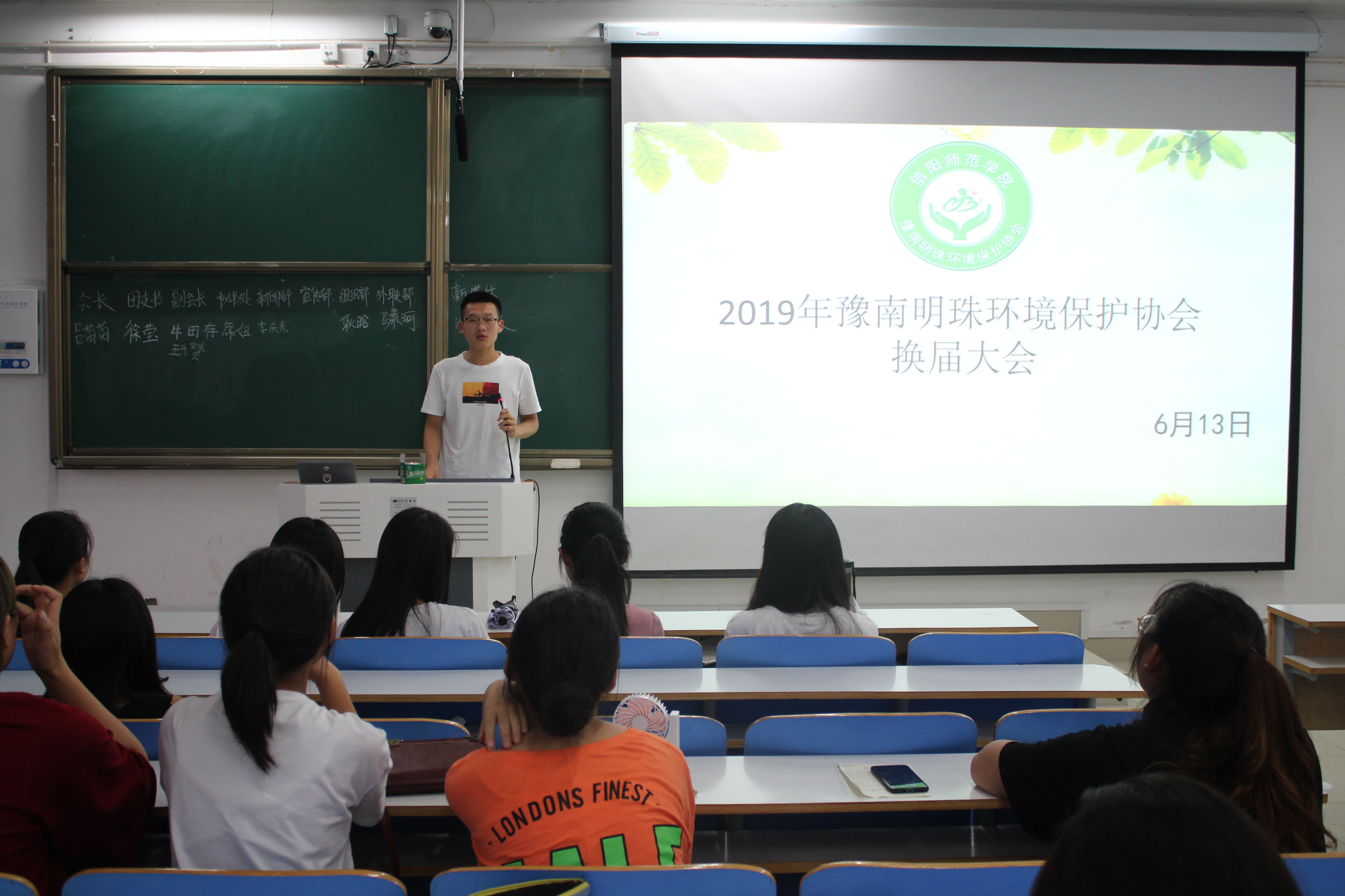 6月13日晚,豫南明珠环境保护协会在社科楼516教室顺利举行2018-2019学年社团换届竞选大会。永利集团官网分团委学生会副主席高蓉、社长丁素艳、团支书郑梦丹及18级全体成员共同参加了此次全会。会议由丁素艳主持。
