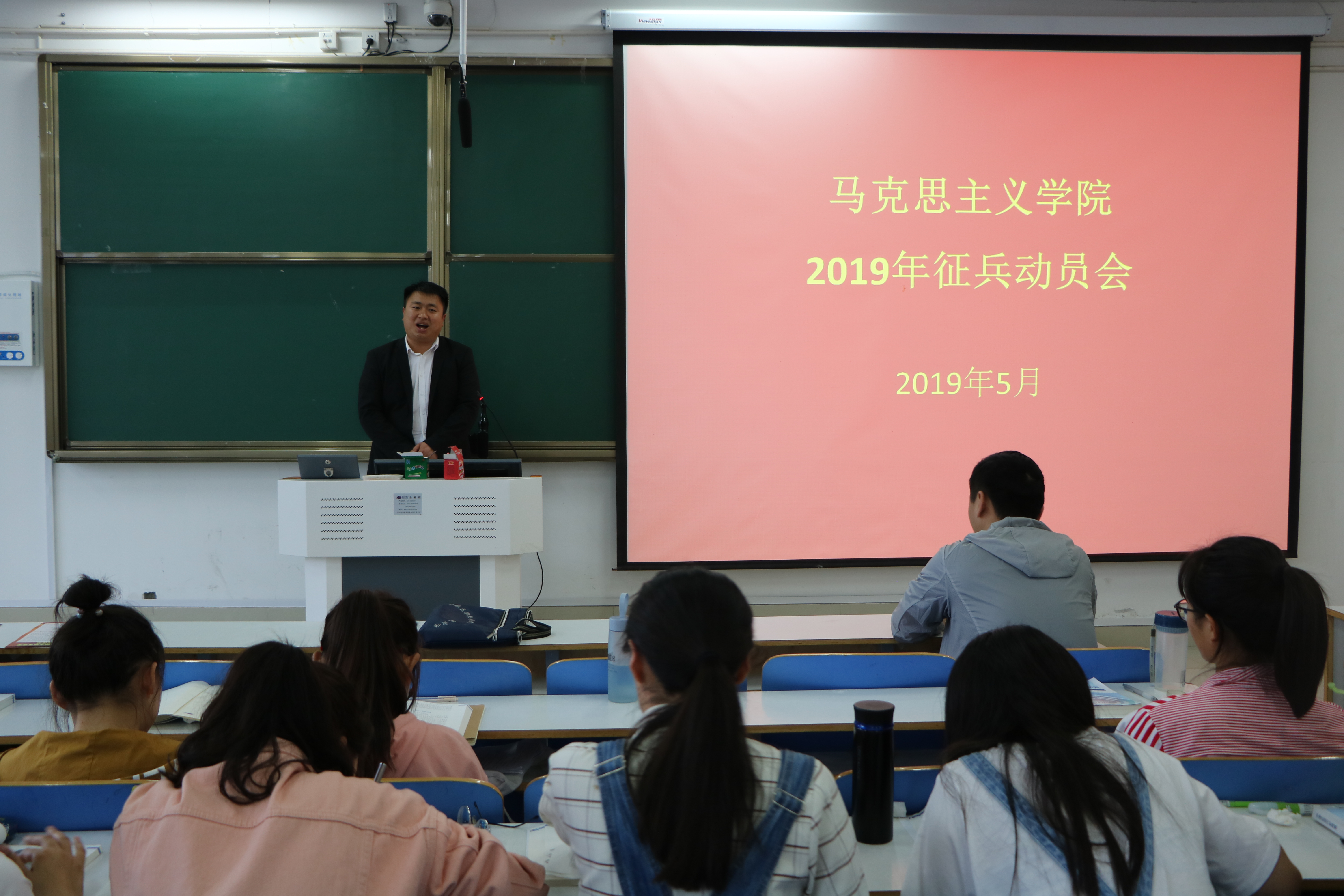 5月15日下午,永利集团官网在社科楼516、社科楼515教室相继召开永利集团官网2019年征兵动员会。永利集团官网武装干事曹菁菁、团委书记曹栋、研究生退伍士兵段志勇、2015级部分学生以及2016级、2017级、2018级全体学生参加此次动员会。动员会由曹菁菁主持。