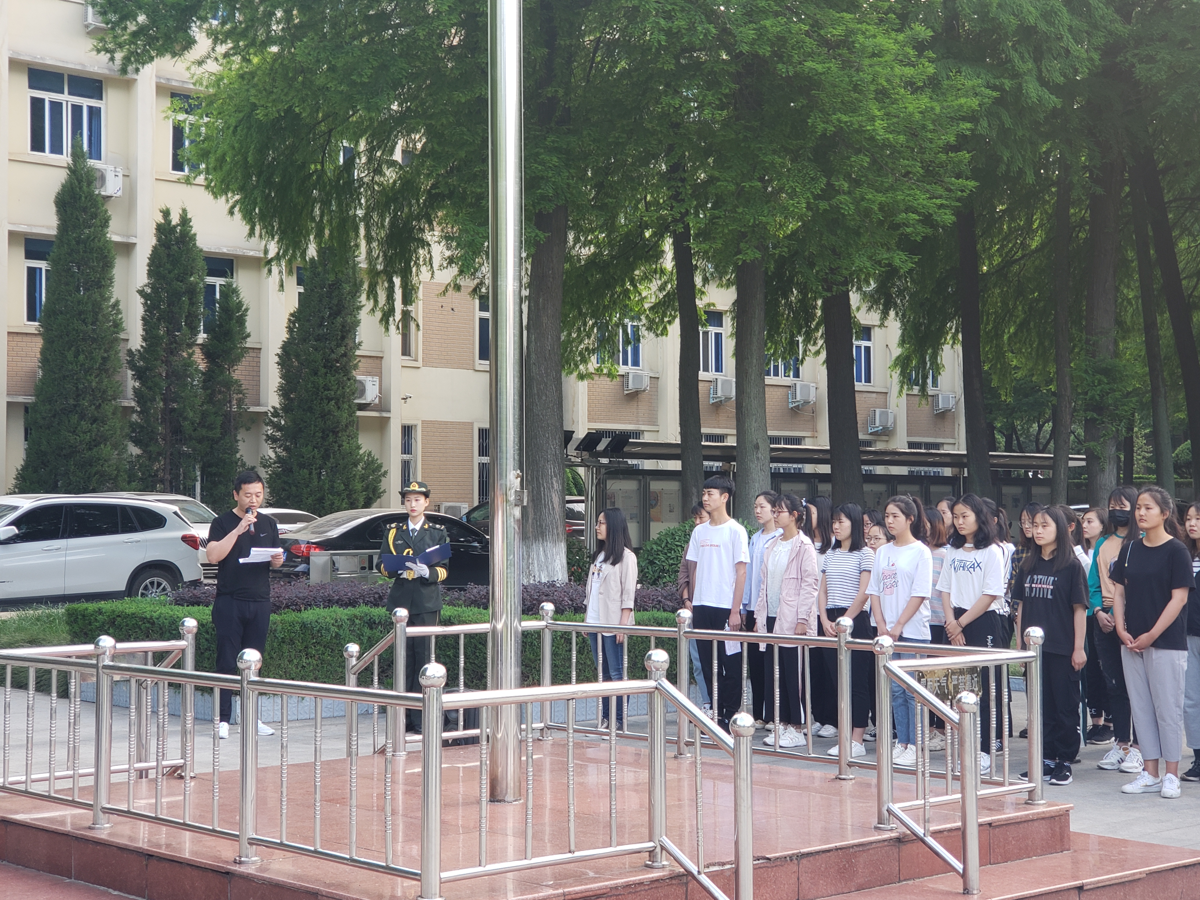 5月20日清晨,永利集团官网于行政楼隆重举行升旗仪式。永利集团官网团委书记曹栋,专职辅导员曹菁菁,我校国旗护卫队和2018级全体学生参加本次升旗仪式。仪式由国旗护卫队莫铭非主持。