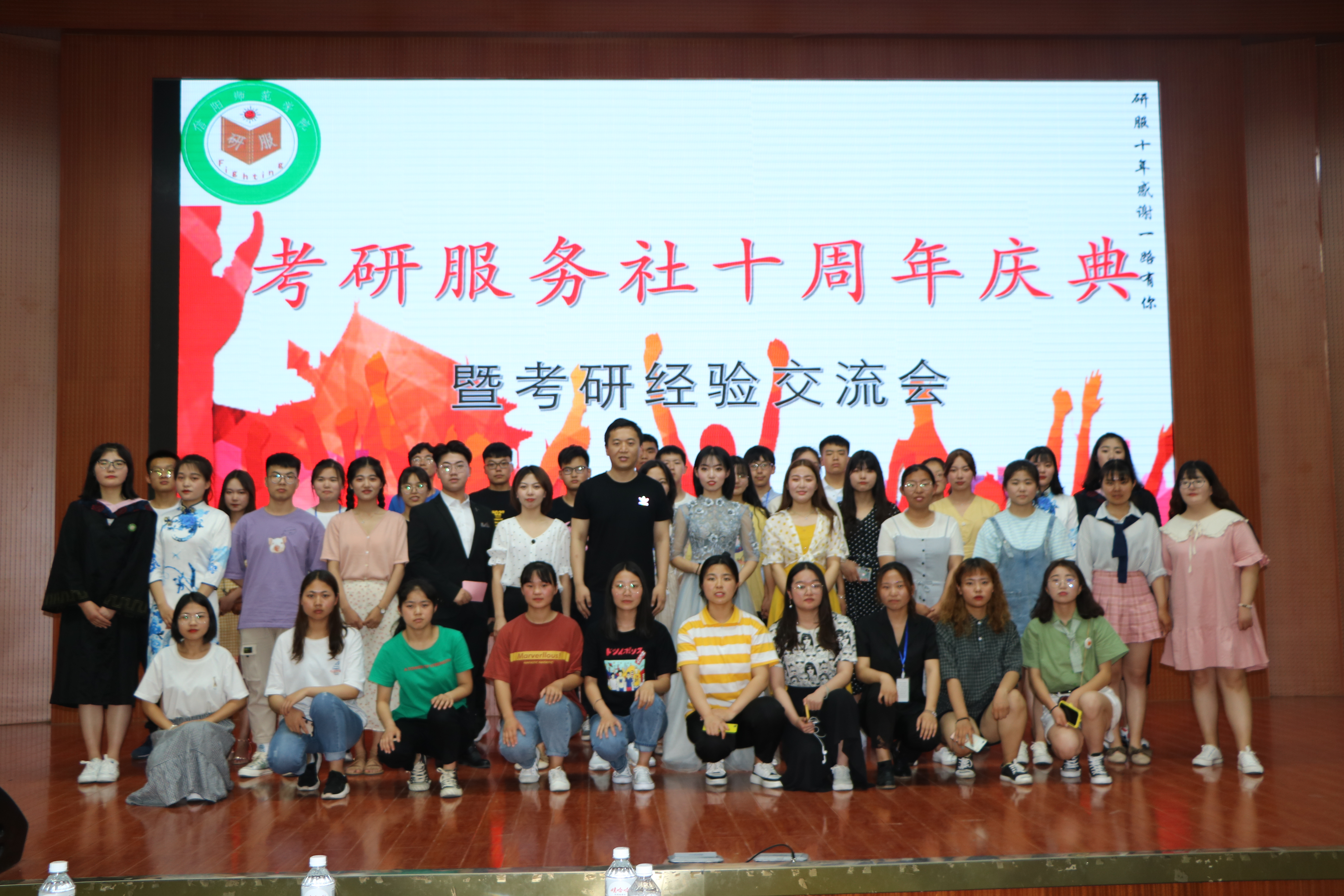 十年风雨考研路,砥砺前行铸辉煌。5月24日晚上,永利集团官网考研服务社在逸夫楼报告厅举办十周年庆典暨考研经验交流会。永利集团官网团委书记曹栋、团委老师曹菁菁、考研指导老师罗璇、信阳师范学院2019届考研成功代表以及数百名学生参加了本次活动。活动由校广播站颜铭志、崔雨洁主持。