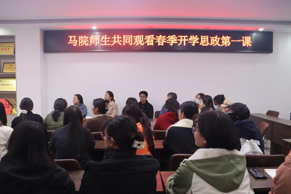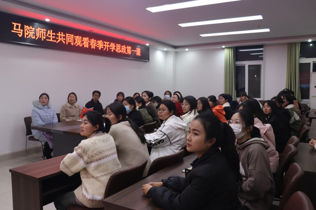 为学习贯彻习近平文化思想和习近平总书记关于思政课建设的重要论述,统筹推进全省大中小学思政课一体化建设和文化育人工作,引导广大师生深化对“两个确立”决定性意义的认识,省委教育工委、省教育厅于3月9日晚上开展2024年河南省春季开学思政第一课暨大中小学思政课集体备课活动。永利集团官网组织学院师生共同观看了直播。