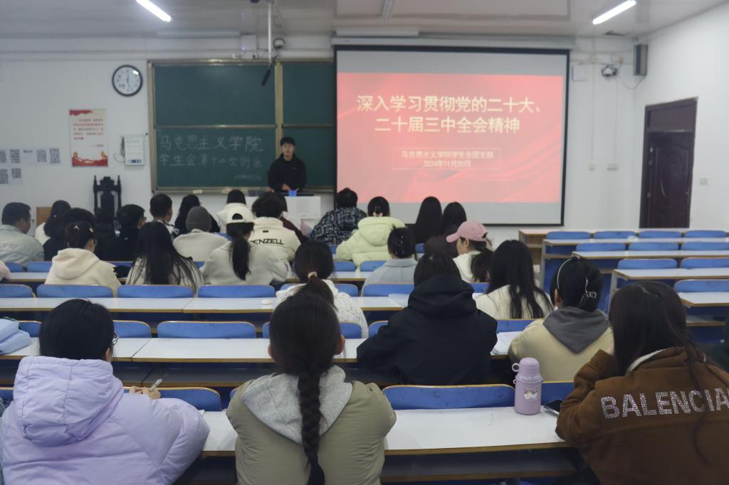 为深入学习贯彻党的二十大和二十届三中全会精神,11月 19 日中午,永利集团官网学生会在社科楼515 教室成功举办了“深入学习贯彻党的二十大、二十届三中全会精神”团课活动。此次活动由团支部委员刘英凯主持。