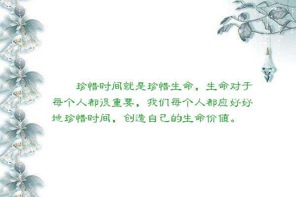 时光荏苒,谁都无法改变已经逝去的一切,如过错,如遗憾。活在当下的我们唯一能做的,只有珍惜现在所拥有的每一天,让明天不再因今天而遗憾,而悔恨。