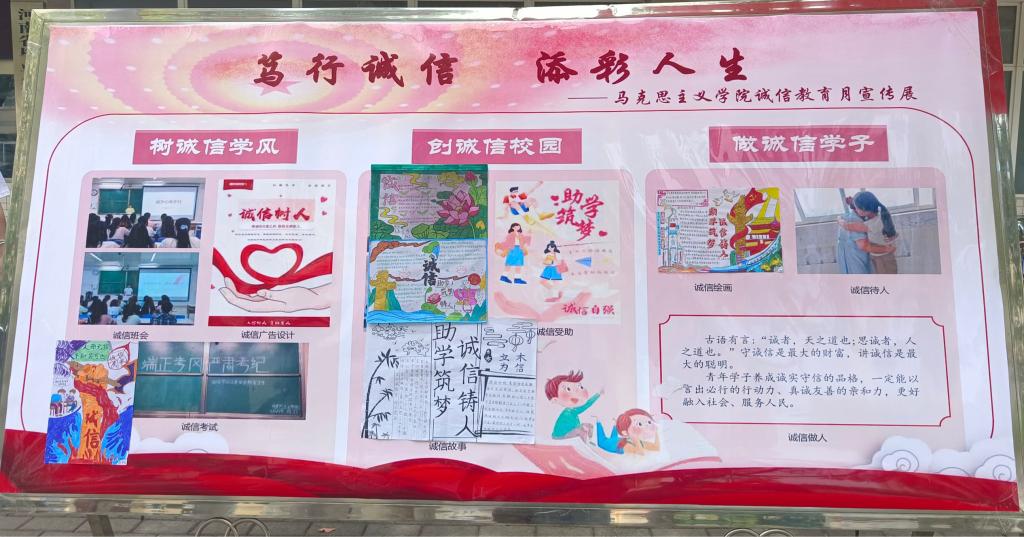 本次比赛主要是以绘画艺术的形式,进行诚信教育宣传。比赛前期,通过推文、QQ等多种形式的活动预告宣传,永利集团官网青年学子踊跃报名并认真准备手抄报的制作。比赛期间,参赛者们围绕诚信宣传的主题,采用绝妙的色彩搭配 ,以独特的创作视角 、新颖的思维观点共同呈现出了完美的手抄报作品,为我们展现了诚信的重要性和必要性。比赛结束后,参赛同学的作品在永利集团官网诚信教育宣传展报上进行了展示。