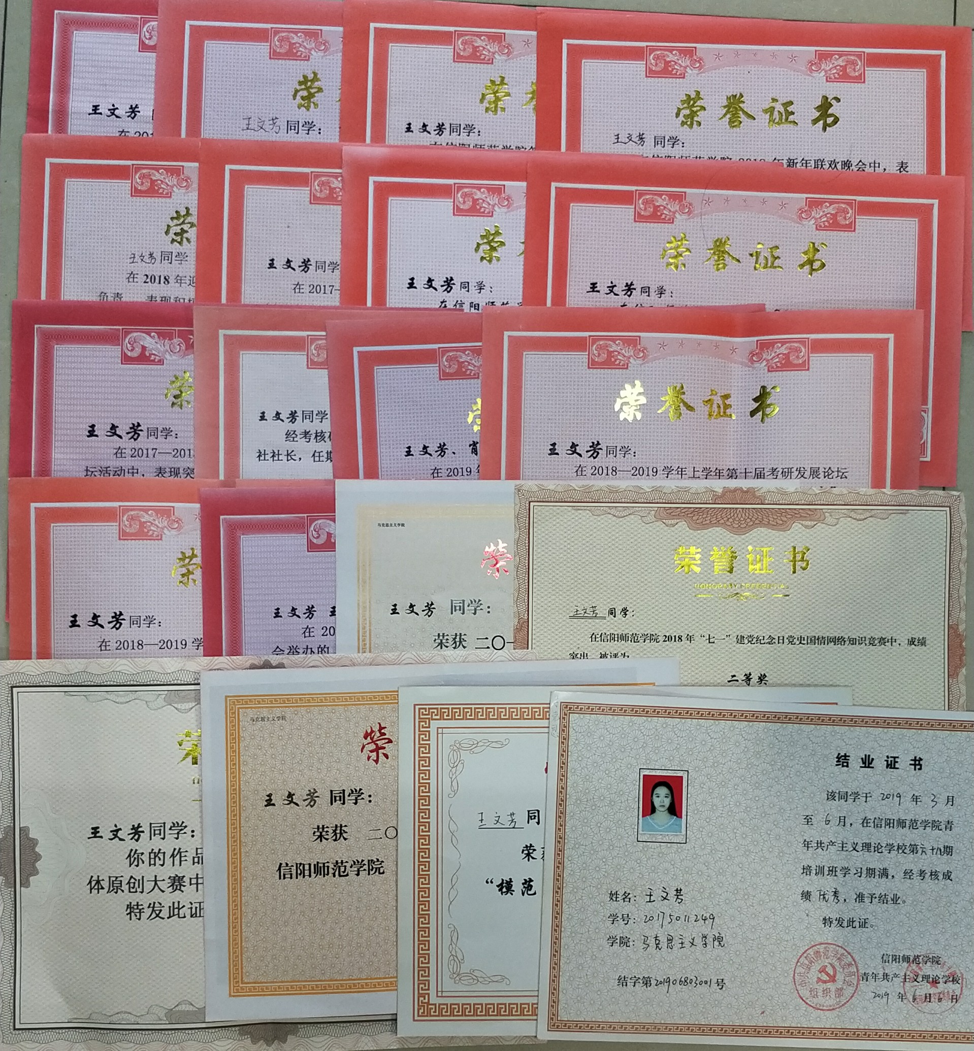 在学生工作方面,积极参与,脚踏实地。大一刚入学,在校学生会学学术科技部担任干事,在考研服务社担任组织部干事,大二在考研服务社担任社长,大三开学初期,担任2019级思想政治教育二班新生班代,现任永利集团官网分团委学生会主席。积极参与学校活动,参与组织、服务学校及学院多项活动,例如信阳师范学院迎新活动、信阳师范学院元旦晚会、信阳师范学院“诗词大会”、信阳师范学院“翰林学坛”、考研经验流会、英语四六级模拟考试、祈福考研等活动。曾获荣誉如“模范团干部”、“模范干部”、“优秀工作者”、“优秀志愿者”等。