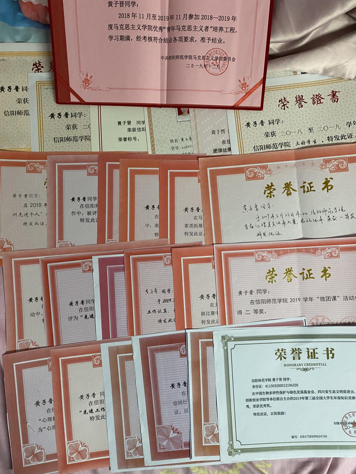 刻苦钻研知识。自入学以来,一直对专业知识保持高度的热情,积极学习专业知识,2018及2019学年综合测评均位于班级前列并获得校级奖学金,主持大学生科研项目《依托大别山精神培养优秀青年马克思主义者的有效路径分析——以信阳师范学院为例》;