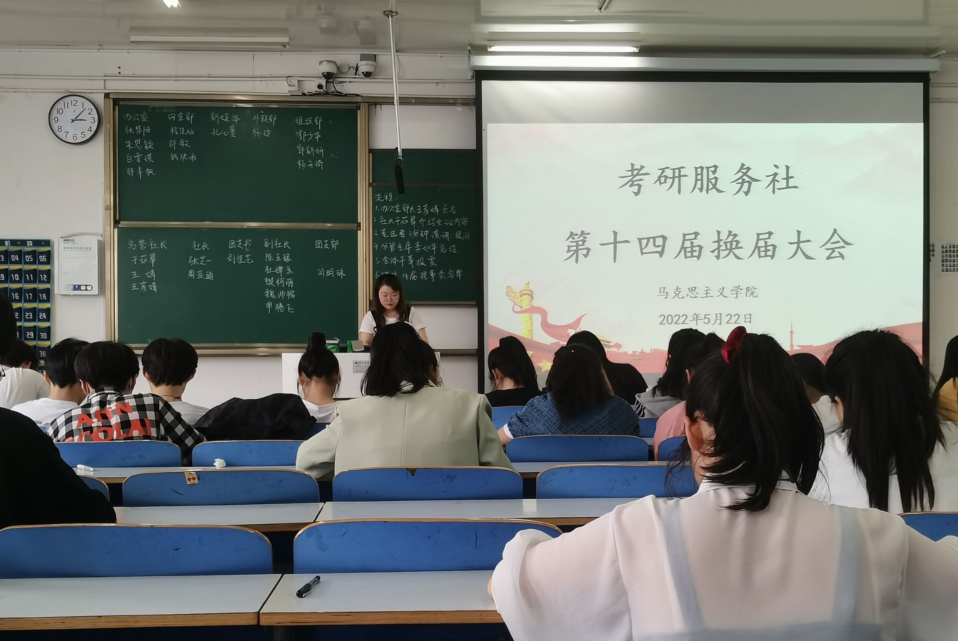 首先,考研服务社社长于茹翠对上一届社团工作做了简要的回顾与总结,并对新一届考研服务社成员提出了殷切的寄语。然后,各位竞选者依次进行自我介绍,并且表述了对自己所竞选岗位的认识以及后续工作的规划。随后,各部门负责人对竞选人进行提问,同学们积极互动,现场气氛十分热烈。在这个过程中,每位竞选者都表现出对自己所竞选职位的热爱以及日后能够做好自己的本职工作的信心。秉承公平、公正的原则,全体社团干事现场进行投票并确定最终新一届各部门负责人。