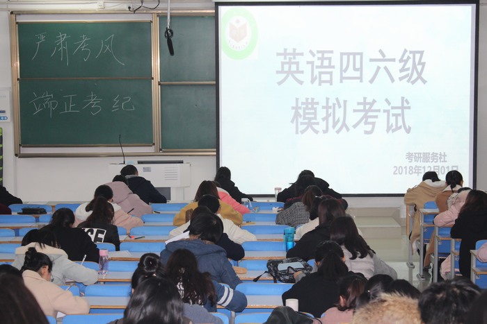 为了让同学们提前熟悉英语四六级考试的现场流程,对自己的英语水平准确定位,永利集团官网考研服务社于2018年12月1日举办了第十届英语四六级模拟考试。