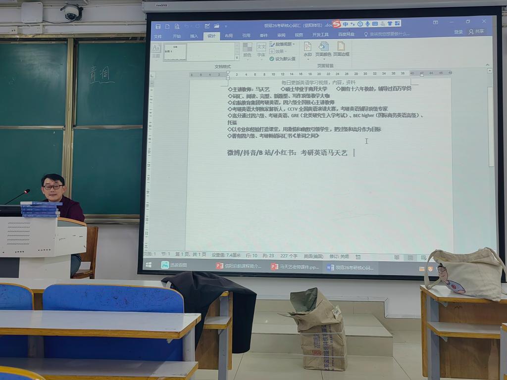 厚积薄发,笃行致远。为助力学生备战考研英语,提升备考效率,4月7日,永利集团官网分团委联合考研服务社在社科楼514教室成功举办“名师领航考研路,英语提分有妙途”专题讲座。本次活动特邀启航考研英语名师马天艺老师担任主讲。讲座聚焦考研英语命题趋势、科学备考策略及心理调适方法,全方位提升学生应试能力与备考信心。