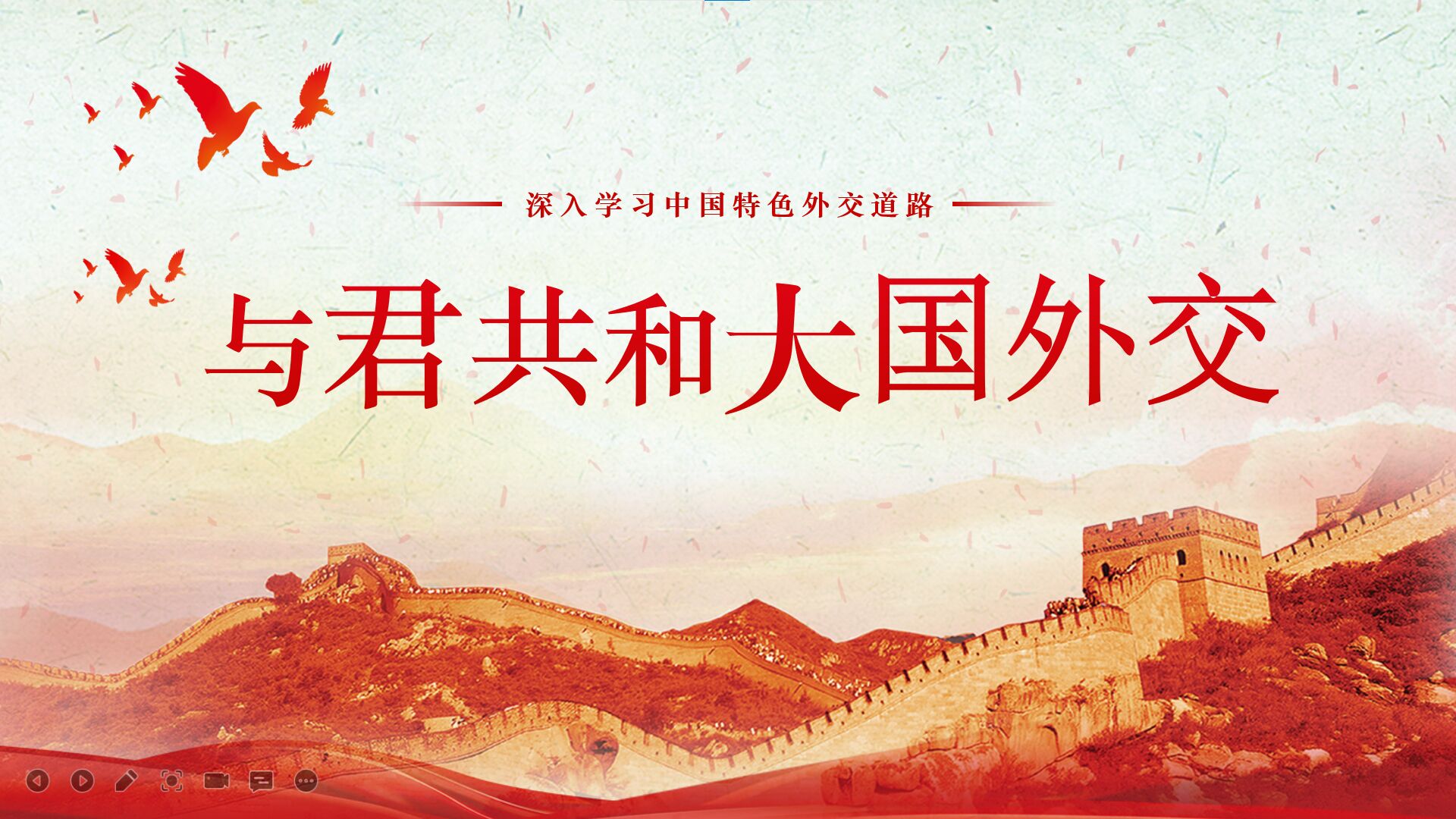 团课一共分为四大板块。团课伊始,陈晓璐通过电影《万里归途》的现实背景“利比亚撤侨事件”引出具体的中国外交事务,展现了其中蕴含的人道主义精神,使社团成员对中国外交有了初步的了解。紧接着,陈晓璐详细讲解了中国外交的具体事务,并对中国外交政策的演变进行分析,点明中国外交根据国际形势变化而灵活调整的特点,使社团成员充分体会到中国外交政策的实用性。随后,陈晓璐播放近代以来中国外交史发展视频,通过直观的方式,使社团成员们对那段艰辛又辉煌的历史产生敬意。最后,陈晓璐总结道:“中国政府始终坚持以人民为中心的发展思想,坚持独立自主和平的外交政策,新时代的中国秉持互利共赢的原则,与各国深化合作,积极构建人类命运共同体。”团课取得圆满成功。