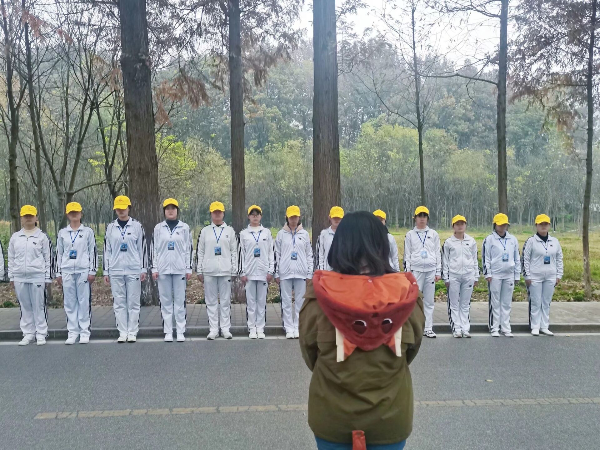 首先,执勤时间较之往常提前十分钟,全体队员在社科楼下集合并自觉整理着装、队牌,由队长进行点名,12点30分准时从社科楼出发前往执勤点。在执勤途中,空气不似往常般清新,放眼望去,校园里灰蒙蒙的一片,但那一列队伍仍然步伐整齐的行走在校园中,雾霾的天气依旧不能阻挡环保志愿服务队坚定不移的步伐。最后,在同样云雾弥漫的执勤点处,环保志愿服务队队长照常对此次执勤活动进行总结,对队员每一次的进步表示肯定,给予鼓励。
