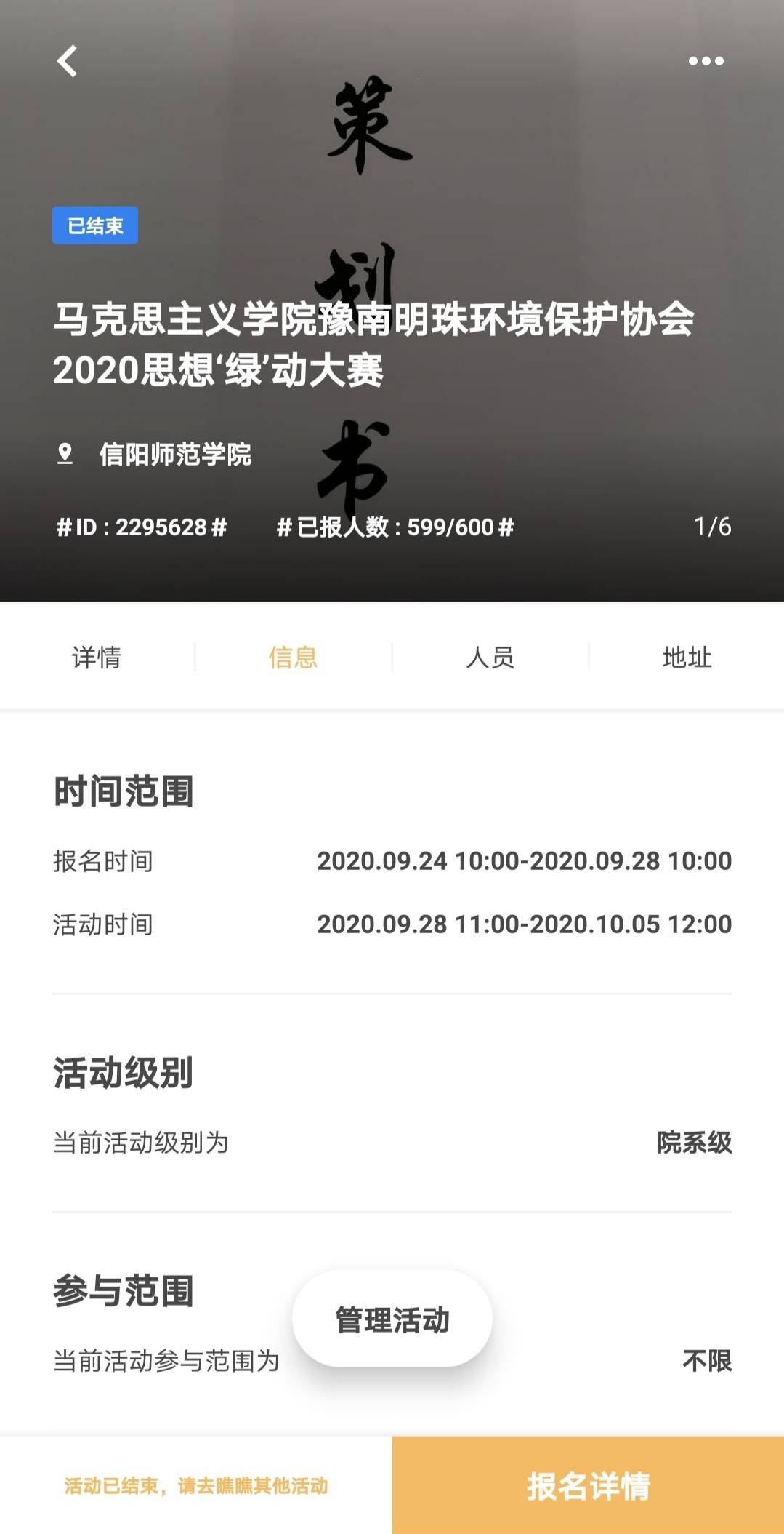 为唤起全体同学的环保意识,9月28日-10月5日,豫南明珠环境保护协会“思想‘绿’动”环保活动创意大赛在线上顺利举行。