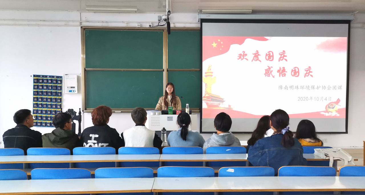 为加强学生的爱国信念教育,10月6日下午,豫南明珠环境保护协会“欢度国庆,感悟国庆”主题团课在社科楼514教室顺利开展。社团会长、团支书及各部部长共同参与了本次团课。团课由团支书贺苏红主持。