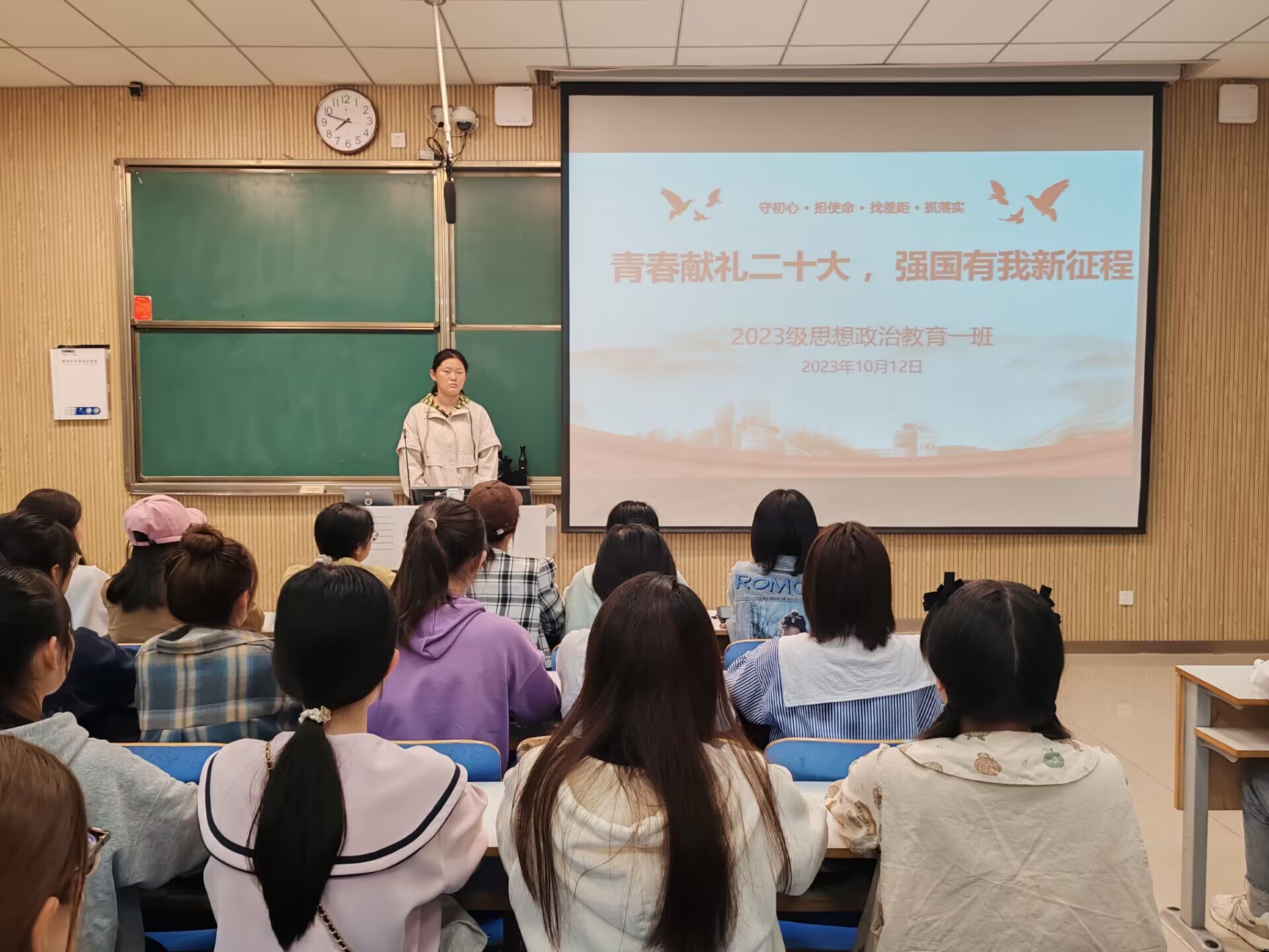 10月12日下午,永利集团官网2023级思想政治教育一班在社科楼515教室召开“青春献礼二十大,强国有我新征程”主题团课。永利集团官网2023级思想政治教育一班全体同学共同参与本次团课,团课由团支书张卓主持。