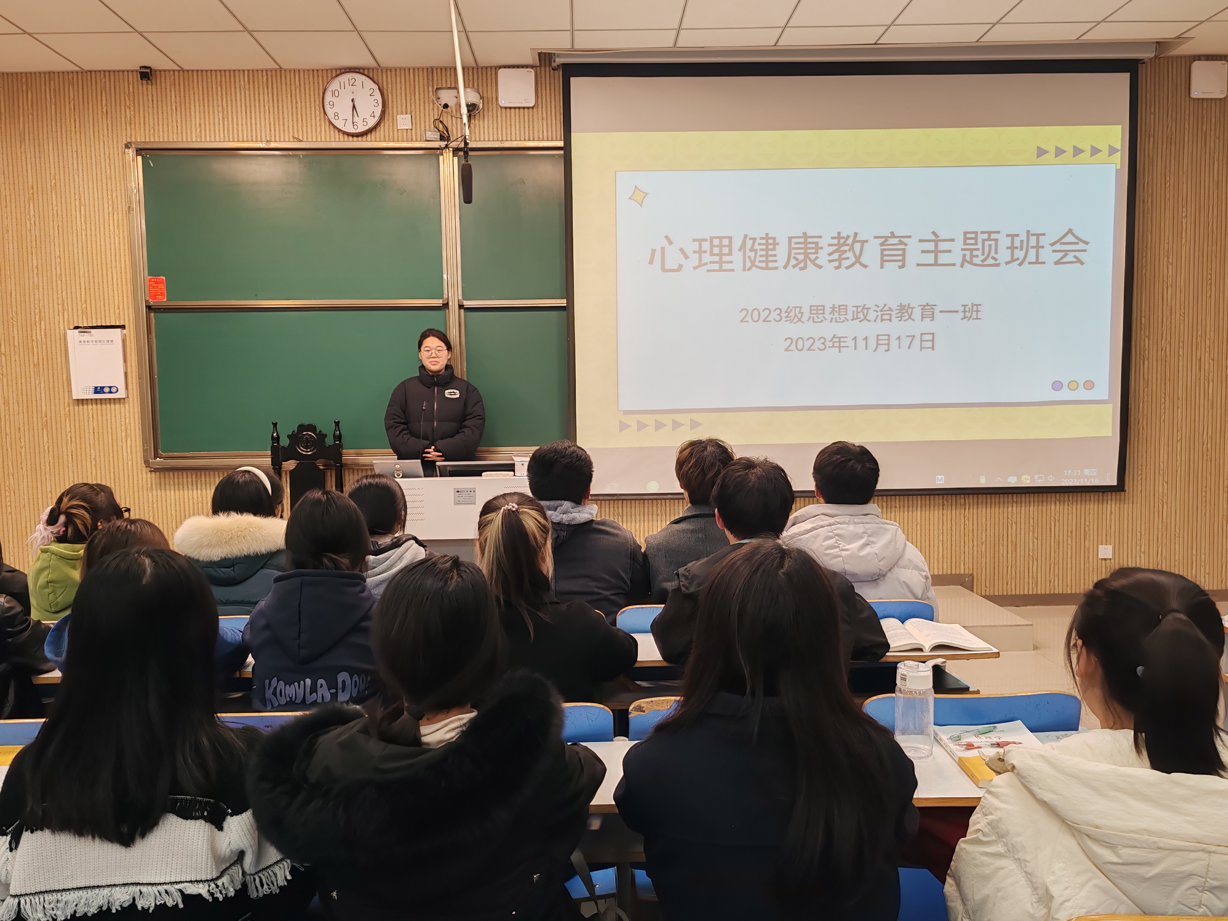 为帮助我班学子了解心理健康知识,掌握心理调适方法,增强心理素质,更好地适应学习和生活,11月17日上午,永利集团官网2023级思想政治教育一班在社科楼515教室召开心理健康教育主题班会。永利集团官网2023级思想政治教育一班全体成员参与本次班会,班会由心理委员夏一萌主持。
