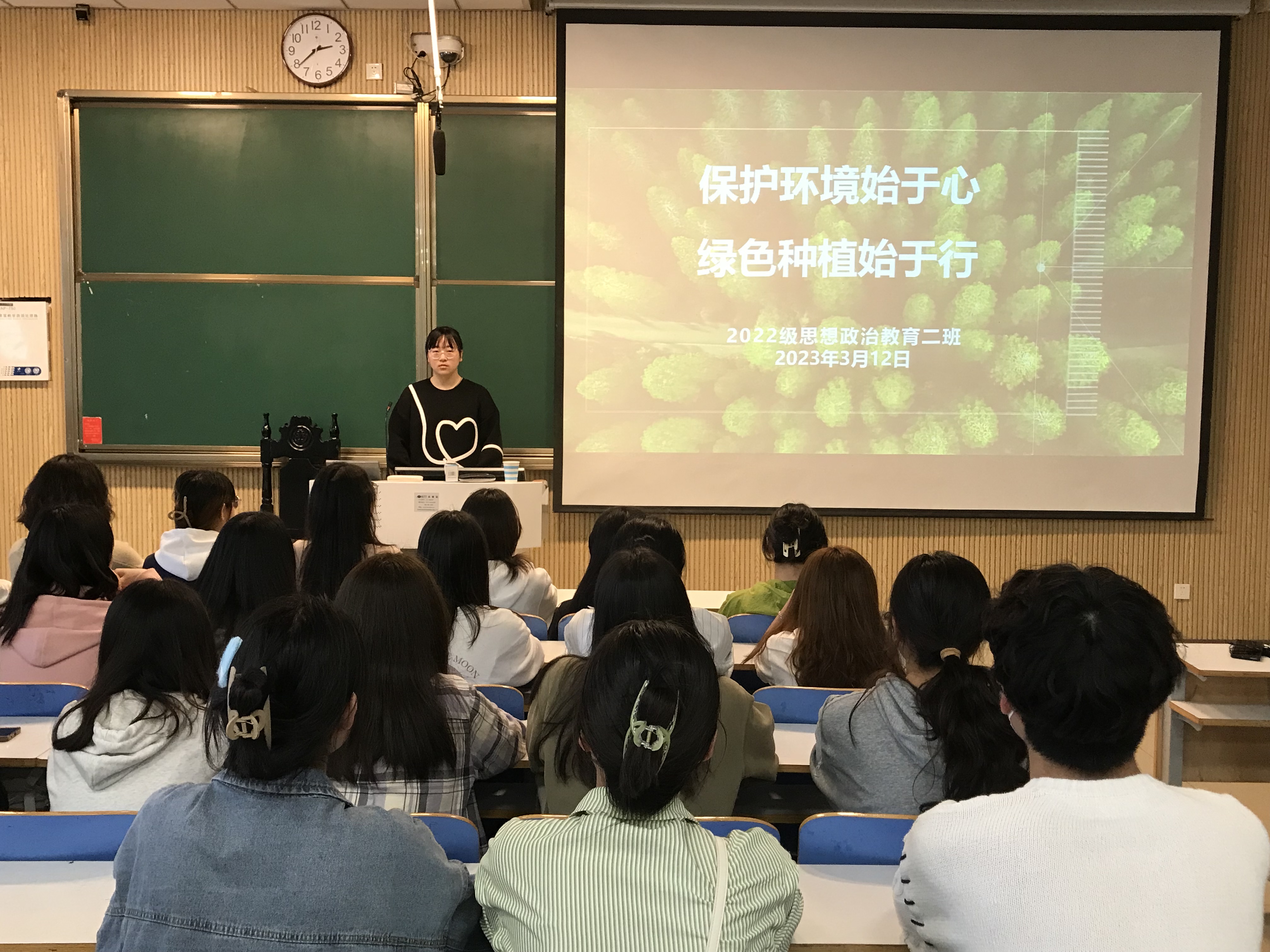 3月12日下午,永利集团官网2022级思想政治教育二班在社科楼515教室召开“保护环境始于心 绿色种植始于行”主题班会。2022级思想政治教育二班全体同学共同参加会议。班会由班长李佳音主持。