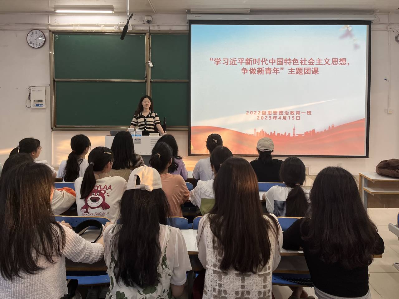 为深入贯彻落实习近平新时代中国特色社会主义思想,加强团支部思想建设,4月15日下午,永利集团官网2022级思想政治教育一班在社科楼514教室召开“学习近平新时代中国特色社会主义思想,争做新青年”主题团课。2022级思想政治教育一班全体同学共同参与本次团课,团课由团支书李佳茹主持。