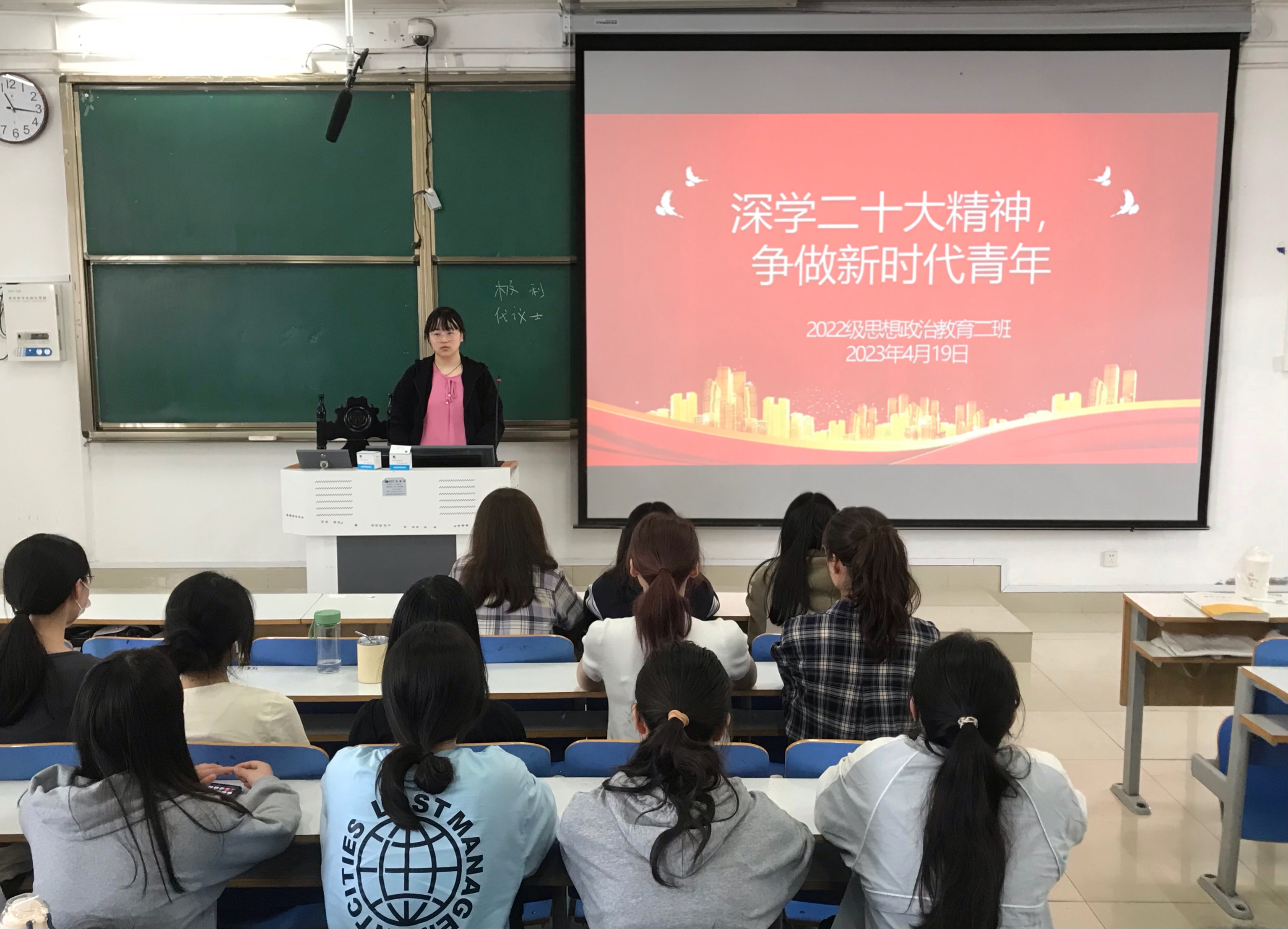 为进一步深学细悟党的二十大精神,在班级内部营造踔厉奋发、勇毅前行的良好氛围,4月19日上午,永利集团官网2022级思想政治教育二班在社科楼514教室召开“深学二十大精神,争做新时代青年”主题团课,2022级思想政治教育二班全体团员共同参加。团课由团支书李佳音主持。