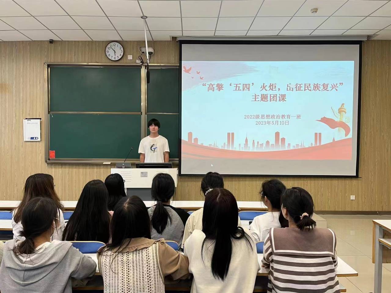 为加强五四精神宣传教育,5月10日上午,永利集团官网2022级思想政治教育一班在社科楼514教室召开“高擎五四火炬,出征民族复兴”主题团课。2022级思想政治教育一班全体同学参与本次团课,团课由团支部副书记闻炎仲主持。