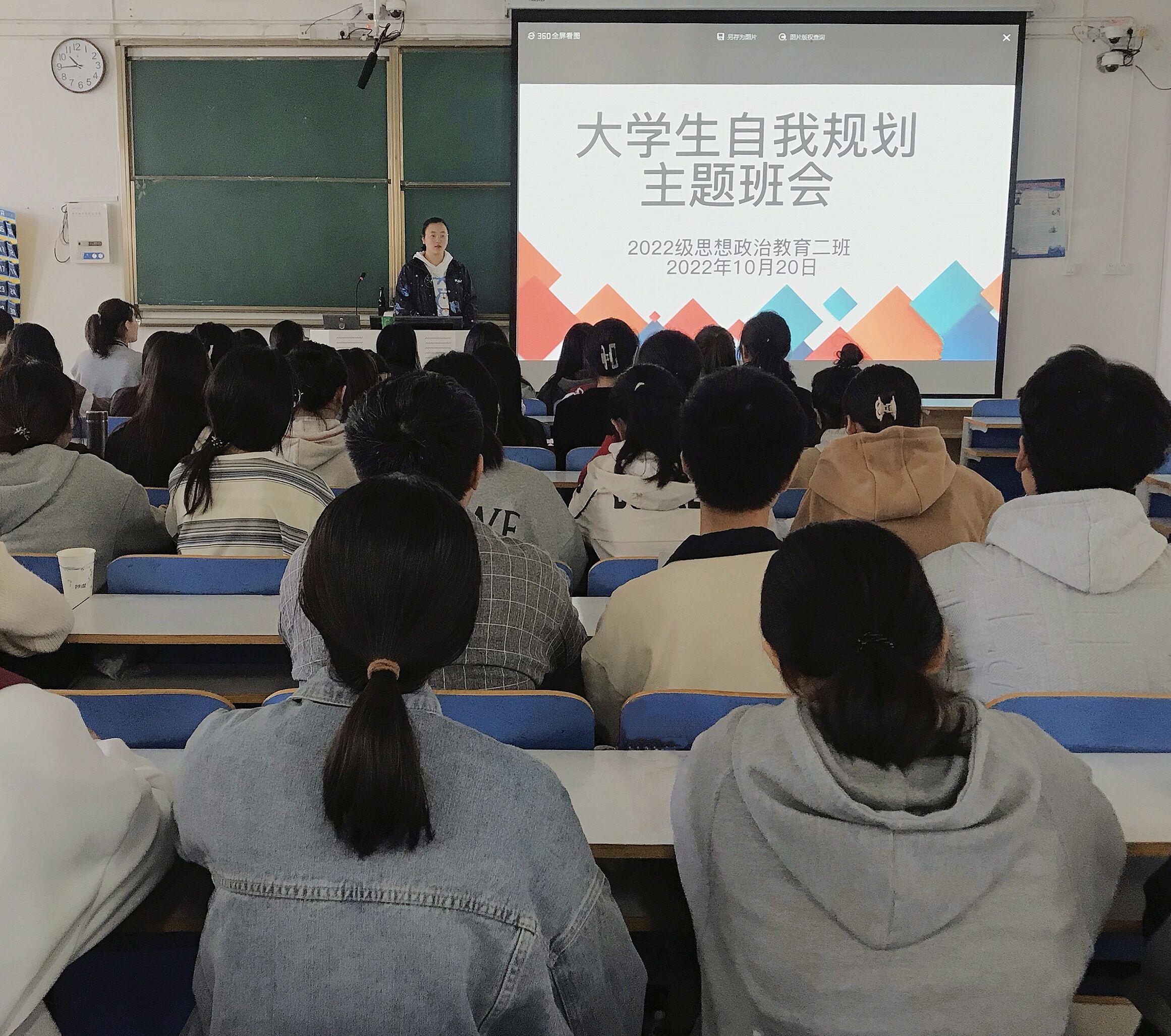 为帮助学生充分了解自我、明确奋斗目标,10月20日上午,永利集团官网2022级思想政治教育二班在社科楼514教室召开“大学生自我规划”主题班会。2022级思想政治教育二班全体同学共同参加会议。本次会议由班长李佳音主持。