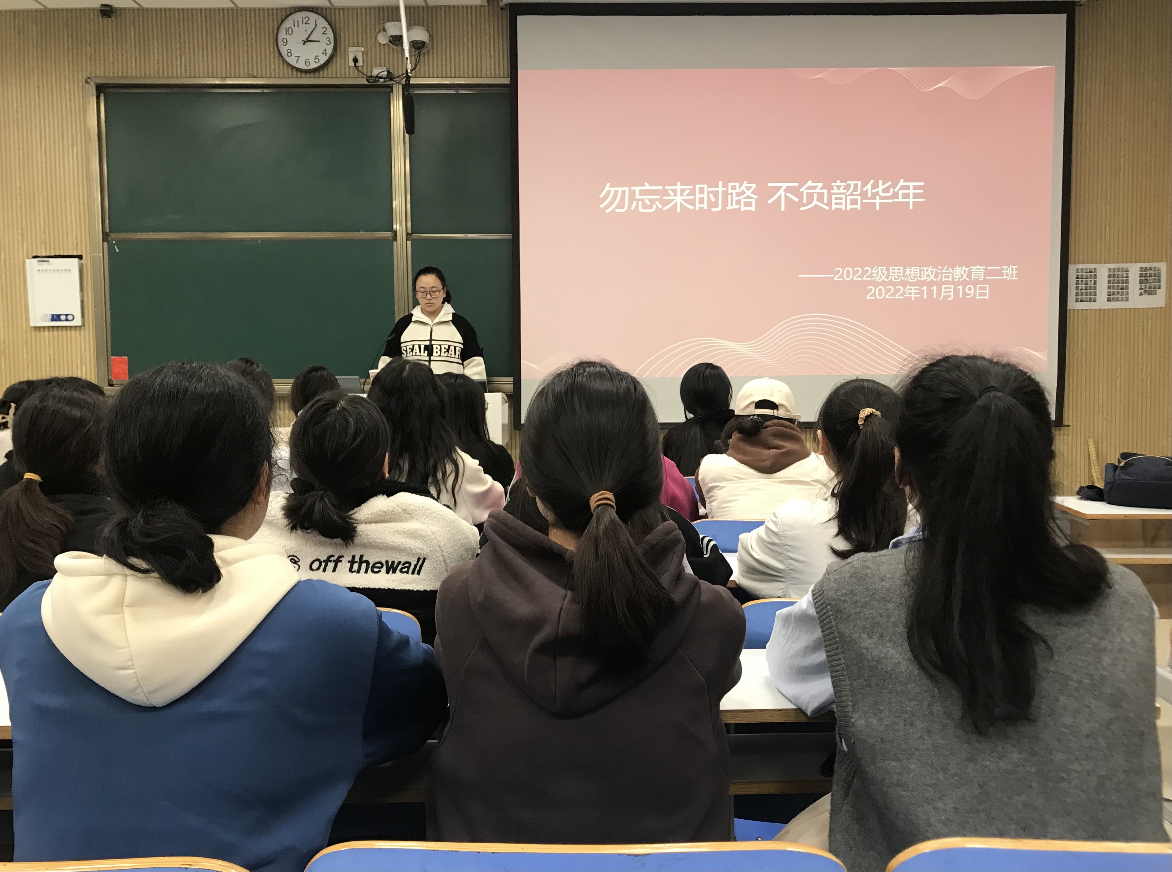 为进一步激发大学生的爱国情怀、凝聚奋进力量,11月19日下午,永利集团官网2022级思想政治教育二班在社科楼515教室召开“勿忘来时路 不负韶华年”主题班会。2022级思想政治教育二班全体同学共同参加会议。本次会议由团支书李佳音主持。