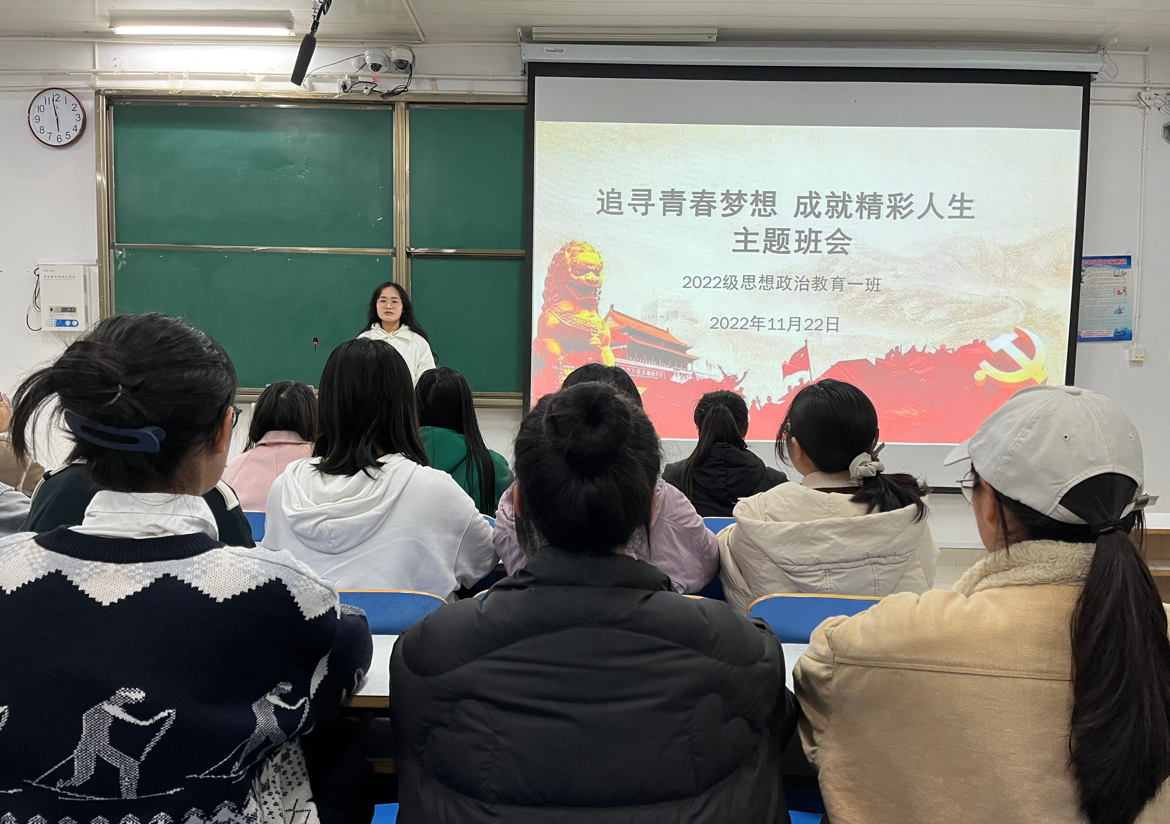 为帮助同学们确立人生目标,实现远大理想,11月22日下午,永利集团官网2022级思想政治教育一班在社科楼514教室召开“追寻青春梦想,成就精彩人生”主题班会。2022级思想政治教育一班全体同学参与本次班会,班会由学习委员司露主持。