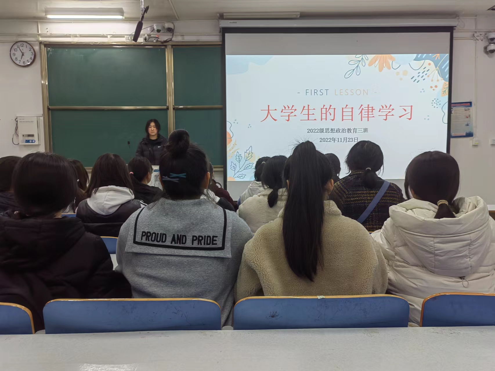 自律学习,不负韶华。为进一步增强大学生学习主动性和积极性,11月23日下午,永利集团官网2022级思想政治教育三班在社科楼515教室召开大学生的自律学习主题班会。永利集团官网2022级思想政治教育三班全体成员共同参与此次班会,班会由学习委员朱欣燕主持。