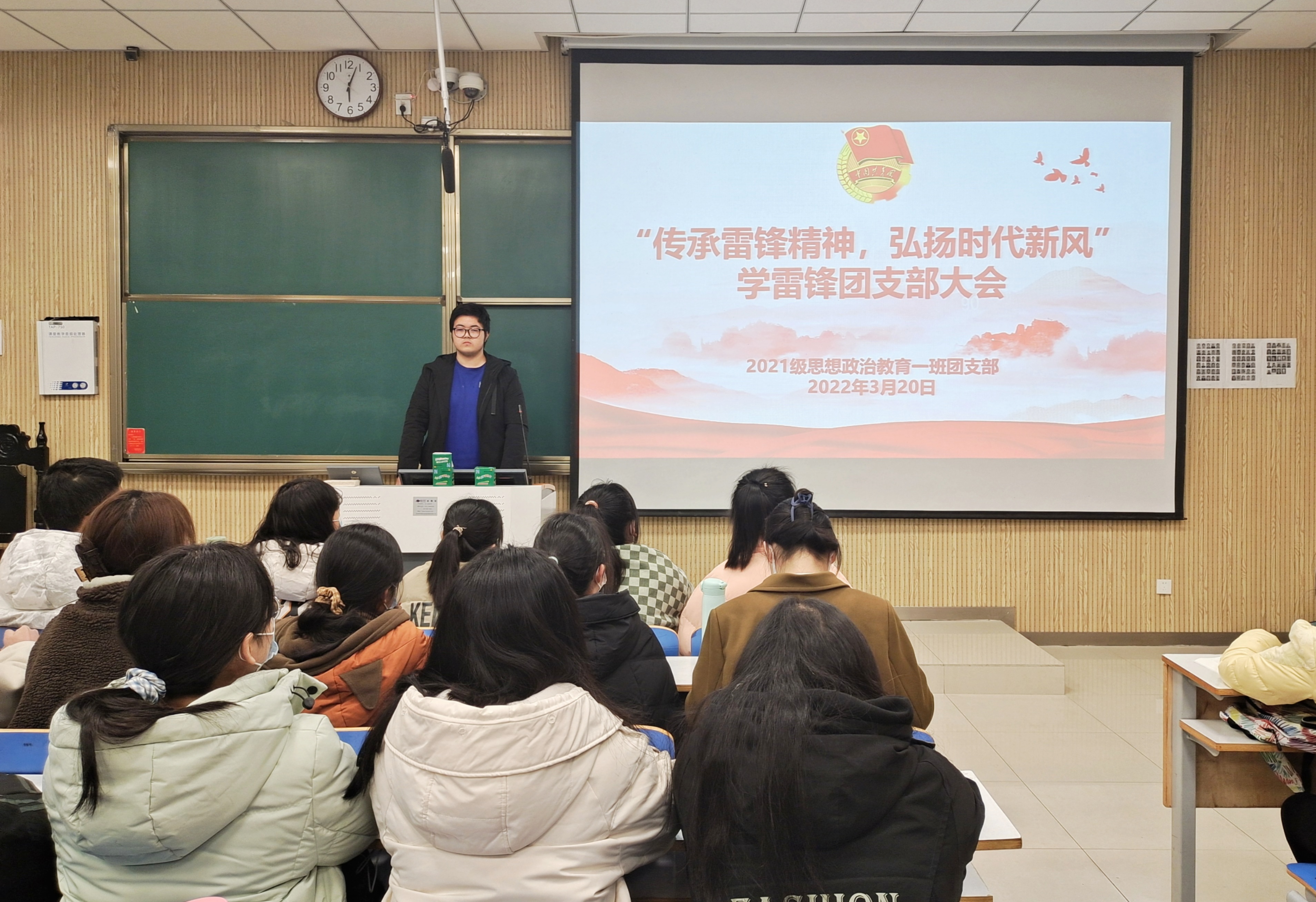 3月20日下午,永利集团官网2021级思想政治教育一班在社科楼515教室召开“传承雷锋精神,弘扬时代新风”学雷锋团支部大会。2021级思想政治教育一班全体团员共同参加了本次会议。会议由团支书戴翰林主持。