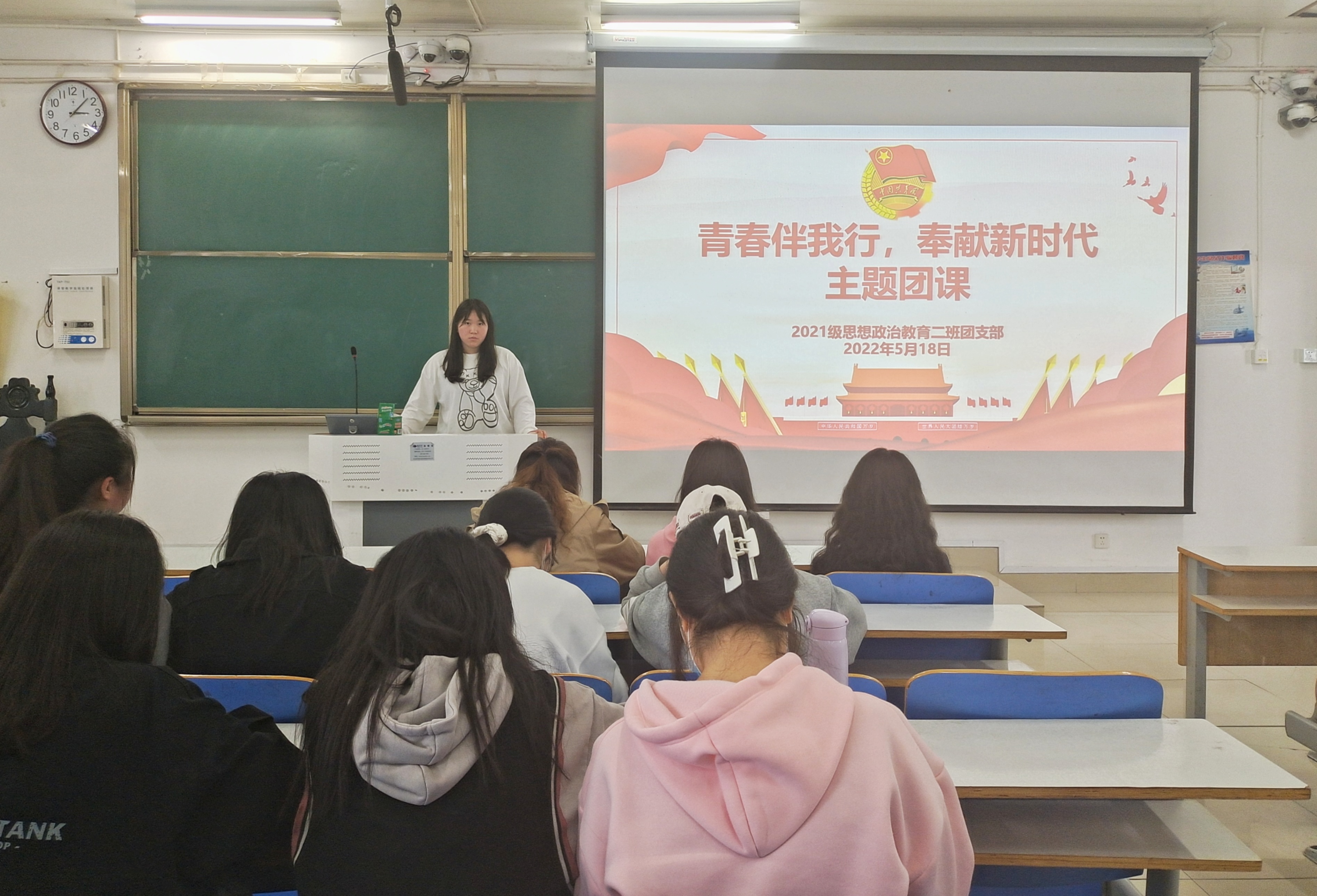 5月18日,永利集团官网2021级思想政治教育二班在社科楼514教室召开“青春伴我行,奉献新时代”主题团课。2021级思想政治教育二班全体团员参加此次团课。团课由团支书王婧欣主持。