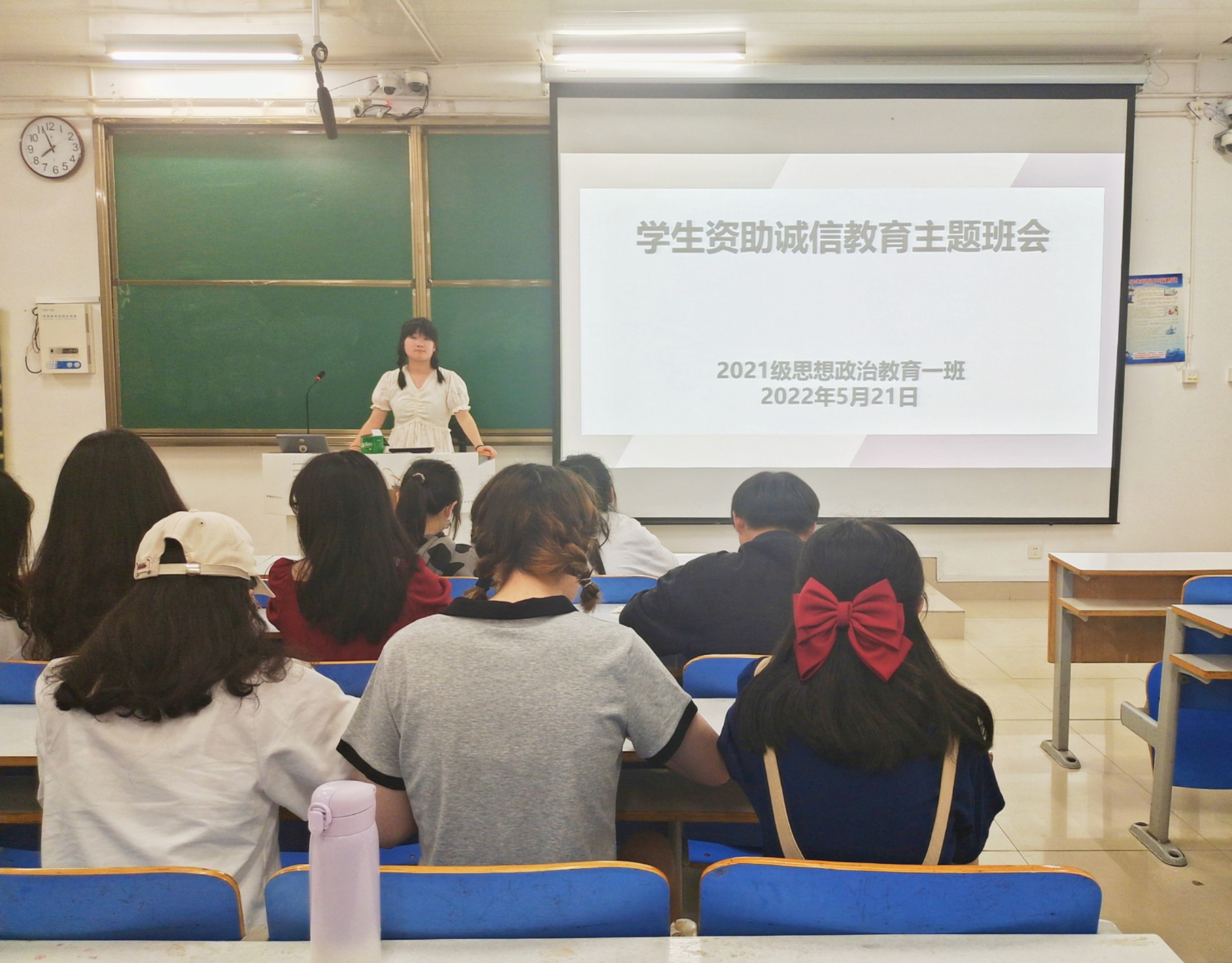 5月21日晚上,永利集团官网2021级思想政治教育一班再社科楼516教室召开“学生资助诚信教育”主题班会。2021级思想政治教育一班全体成员共同参加了本次班会,班会由副班长雷敏主持。